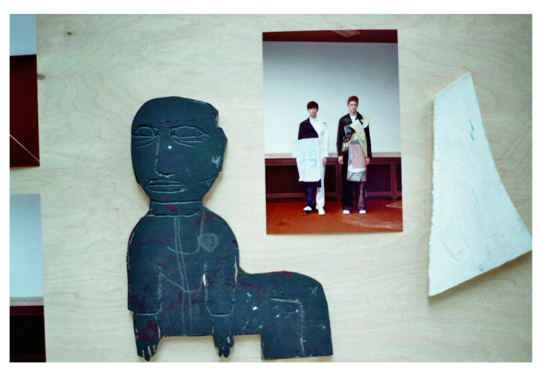 “I changed nearly the entire collection three weeks before the lookbook shoot,” admits Chin, “I realised that I disliked most of the things I had developed.” Leaving behind several pieces with sequins, prints and embroidery, what is left is a more raw approach to glamour that echoes the designer’s main source of inspiration, Christer Strömholm’s “Les Amies de Place Blanche.” The book offers portraits of transsexuals in late 1950s to early ‘60s Paris. These women frequented the city of lights’ red-light district in hopes of saving up the money to travel to Casablanca and undergo an operation to complete their transition. “I really loved the world under Christer’s camera. It’s sleazy, yet stylish. This image is what I want the collection to look like. Not necessary sleazy, but definitely with a strong, sexual vibe to it,” remarks the Taiwanese designer. There is certainly no lack of sexuality with an abundance of cut outs and plunging necklines, lending itself to the question, what type of men are ready for these clothes? Chin imagines clients who “are more adventurous in what they are wearing,” clearly, but also “a character that enjoys showing multiple sides of their personality. A real person who is true to their emotions.” It may take a bit of a sense of adventure to don a sleeveless pink and black coatdress, but there seems no reason anyone should shy away from the Prada-esque trousers with exposed stitching, no?