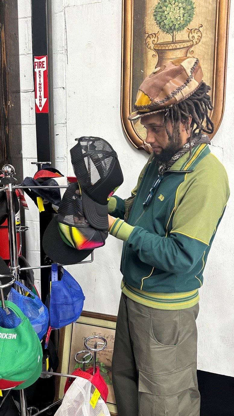 Kozaburo: There were certainly some late-night calls, but the highlight was getting together in person to thrift materials for our collaborative caps and discuss our mutual interests and design philosophies.