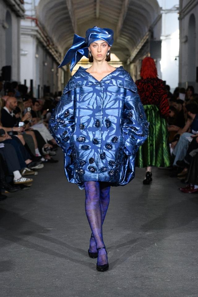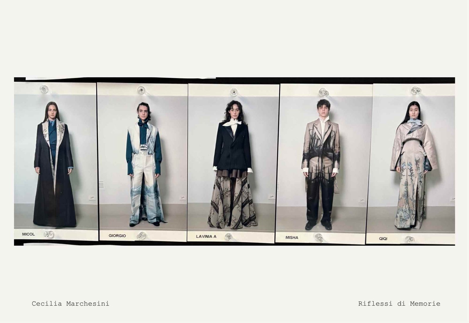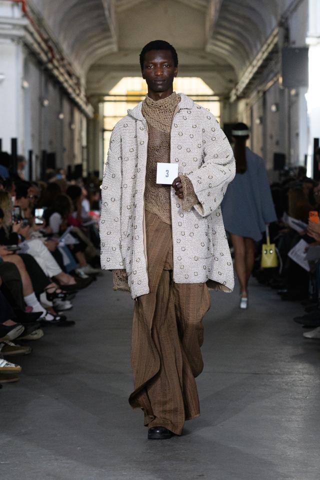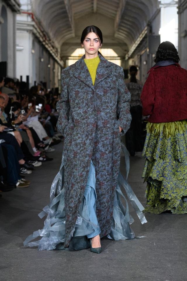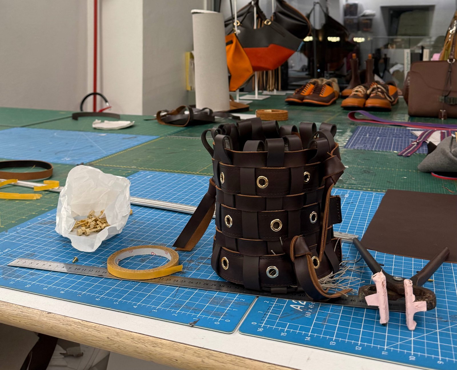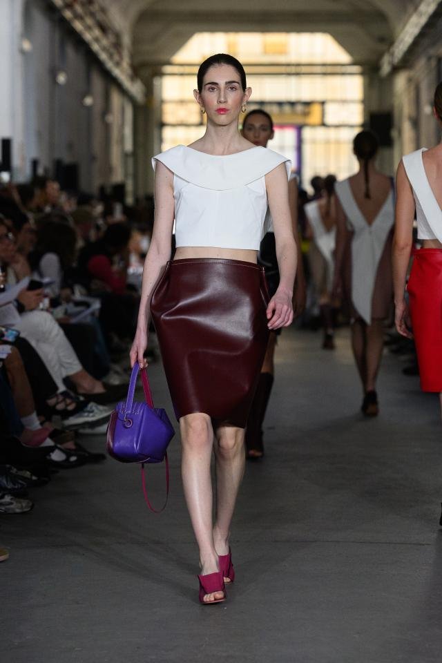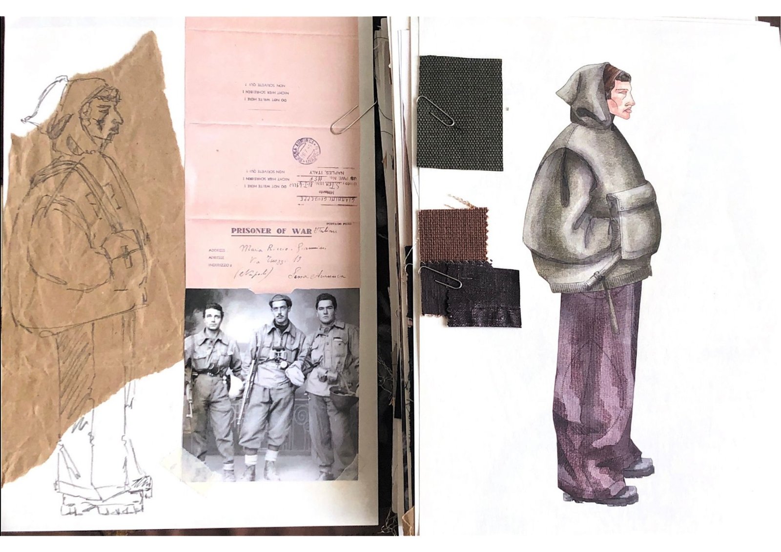 Benedetta Boidi’s collection is inspired by the concept of nomadism, explored through both a historical and iconographic investigation and a reflection on its evolution into the present day, creating a dialogue between past and future. Materiality plays a central role, with a focus on durable fabrics such as leather, alongside shearling and upcycled fur, combined with resin-coated cotton, jersey, and vintage-effect denim. Colour is equally significant, particularly in look one, where three different tones are intentionally combined. Collaborations with industry companies such as Goretti, for leather weaving and stud applications, and Wash Italia, for washed denim with a vintage finish and faux leather detailing, further shaped the work. Through these processes, the collection reflects a continuous exchange between materials, cultures, and time, shaping garments as evolving, nomadic identities. What concerns Boidi most about the contemporary fashion system is the increasing centralisation of creative power within large conglomerates, where brand identity appears shaped more by commercial imperatives than by genuine creative vision, and the pressure to constantly produce risks overshadowing experimentation and research. She is also unsettled by the speed at which the system now operates, with accelerated production cycles and continuous collections leaving little room for reflection and depth. Yet this awareness is exactly what drives her: she enters the field with clarity and intention, fully conscious of its contradictions, believing strongly in the value of personal vision, in research as a necessary process, and in fashion as a form of critical and cultural expression.