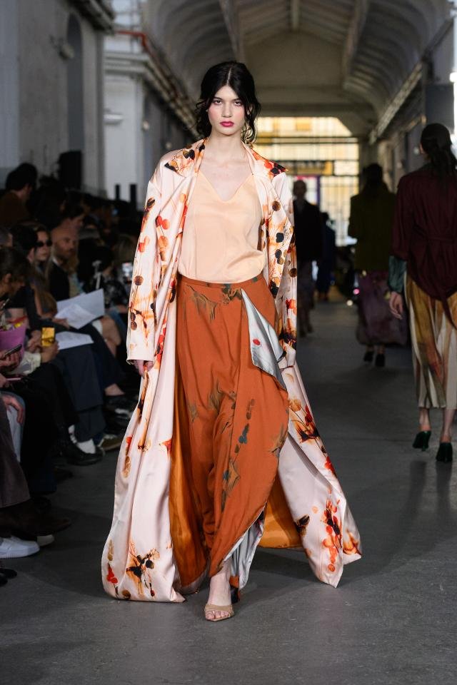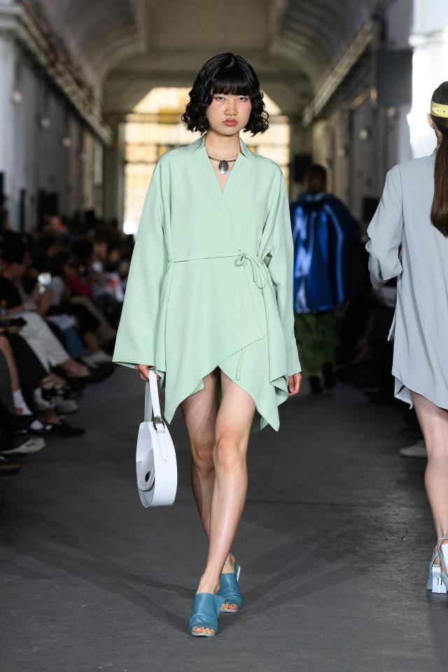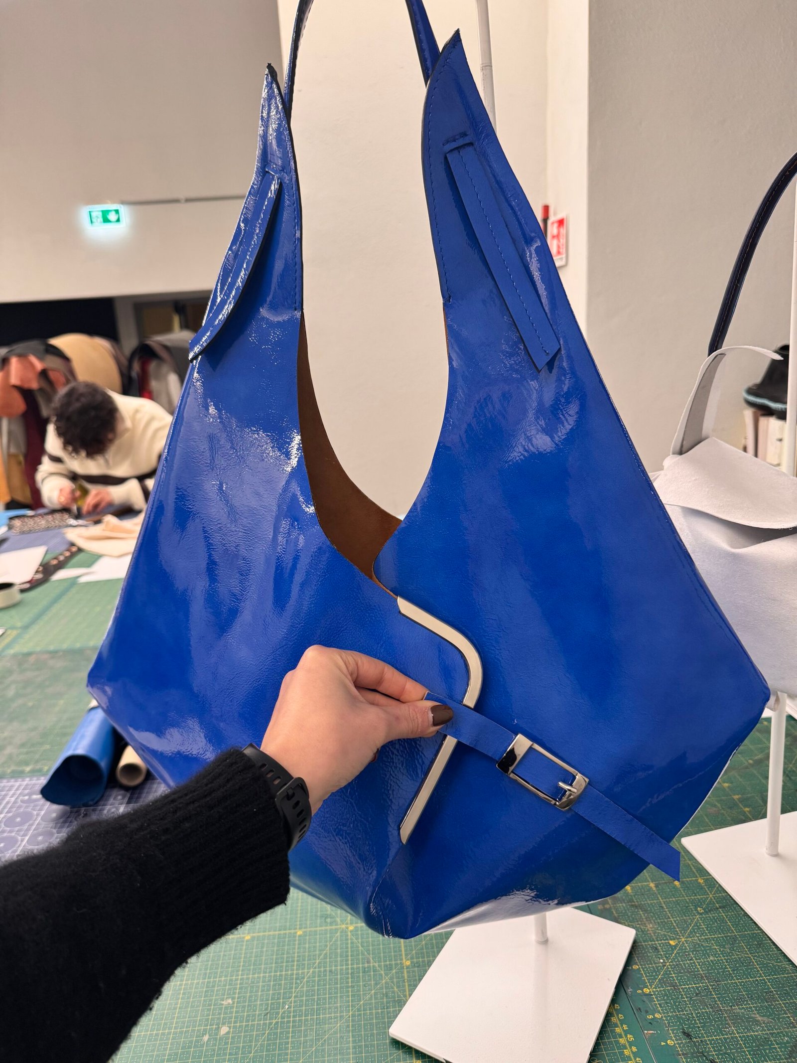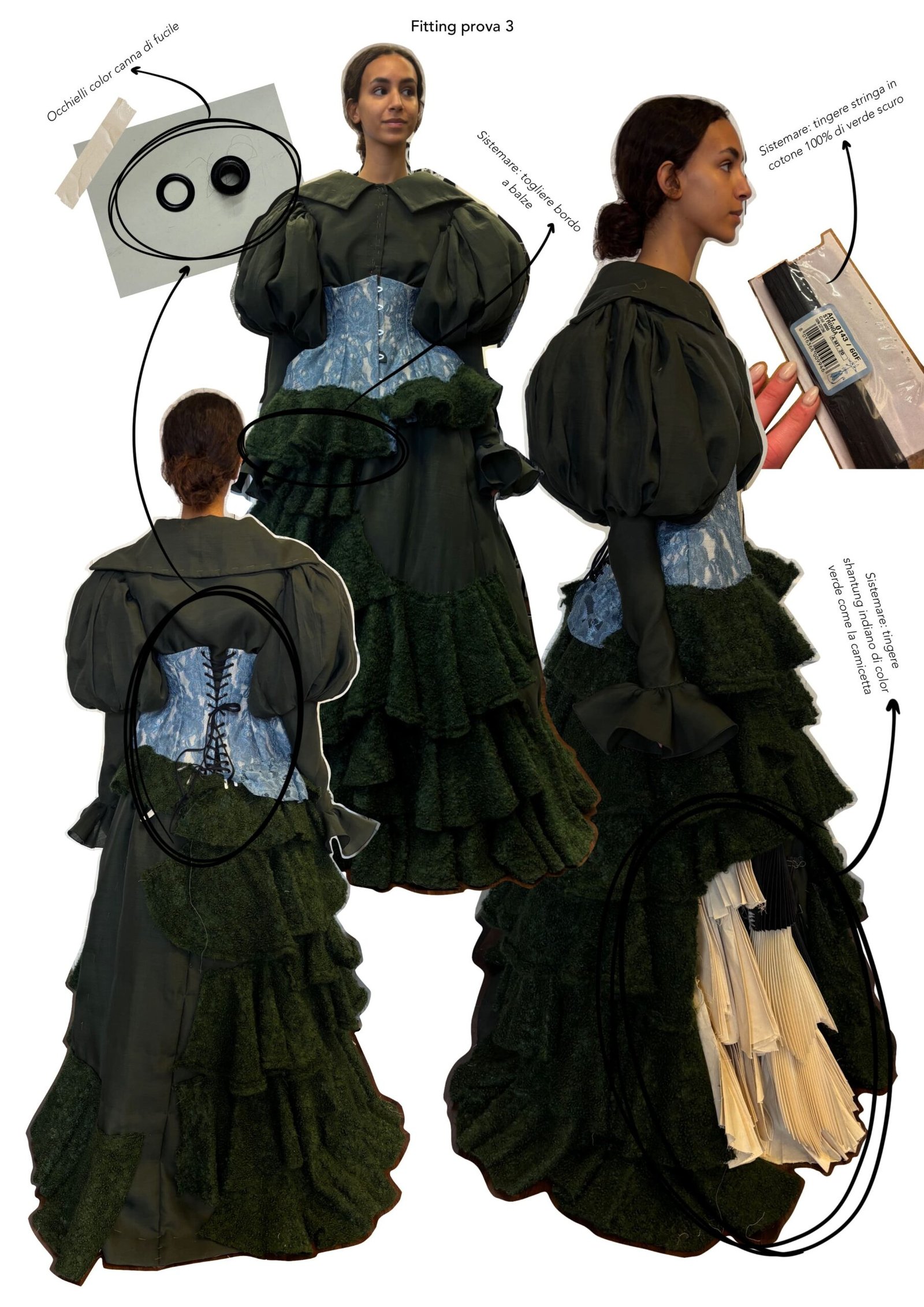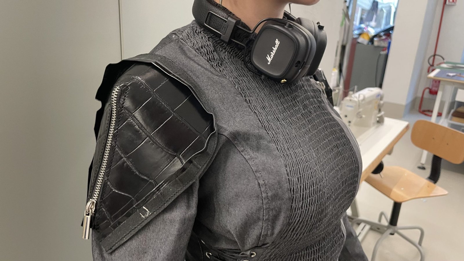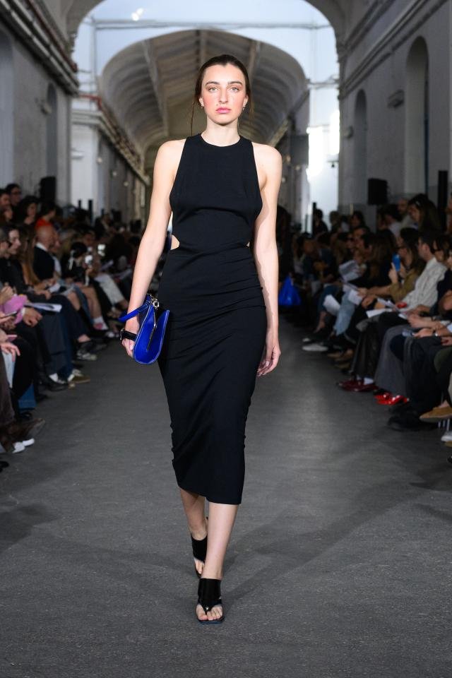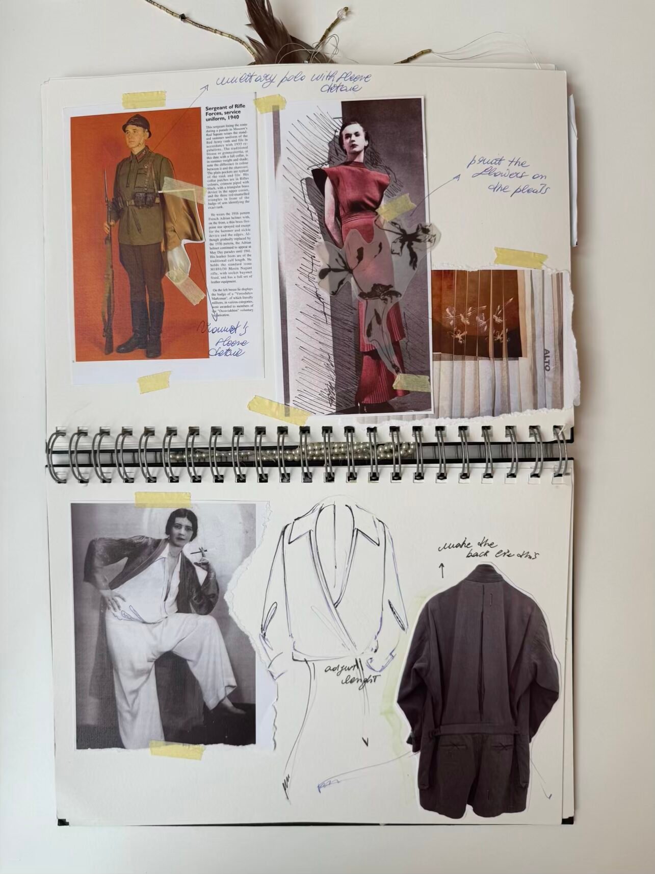 Benedetta Boidi’s collection is inspired by the concept of nomadism, explored through both a historical and iconographic investigation and a reflection on its evolution into the present day, creating a dialogue between past and future. Materiality plays a central role, with a focus on durable fabrics such as leather, alongside shearling and upcycled fur, combined with resin-coated cotton, jersey, and vintage-effect denim. Colour is equally significant, particularly in look one, where three different tones are intentionally combined. Collaborations with industry companies such as Goretti, for leather weaving and stud applications, and Wash Italia, for washed denim with a vintage finish and faux leather detailing, further shaped the work. Through these processes, the collection reflects a continuous exchange between materials, cultures, and time, shaping garments as evolving, nomadic identities. What concerns Boidi most about the contemporary fashion system is the increasing centralisation of creative power within large conglomerates, where brand identity appears shaped more by commercial imperatives than by genuine creative vision, and the pressure to constantly produce risks overshadowing experimentation and research. She is also unsettled by the speed at which the system now operates, with accelerated production cycles and continuous collections leaving little room for reflection and depth. Yet this awareness is exactly what drives her: she enters the field with clarity and intention, fully conscious of its contradictions, believing strongly in the value of personal vision, in research as a necessary process, and in fashion as a form of critical and cultural expression.