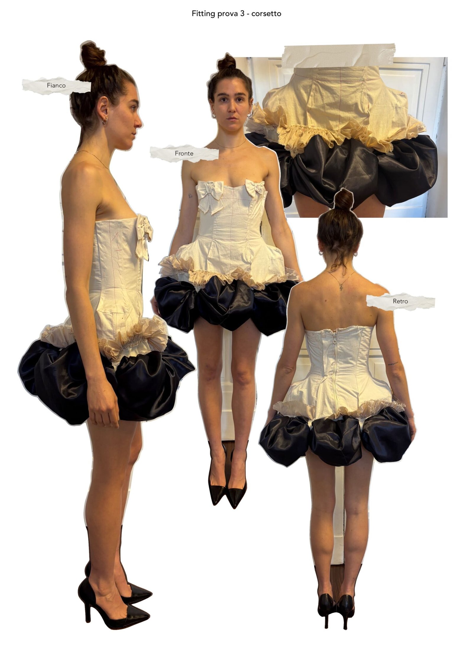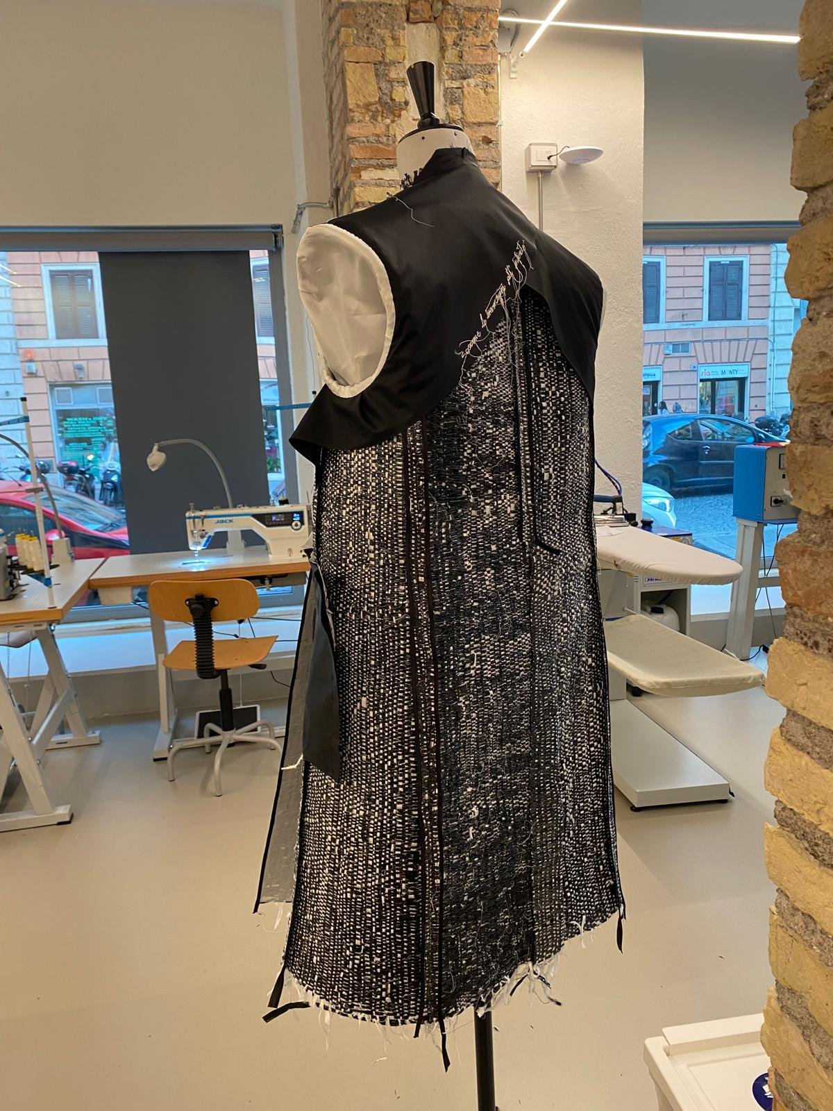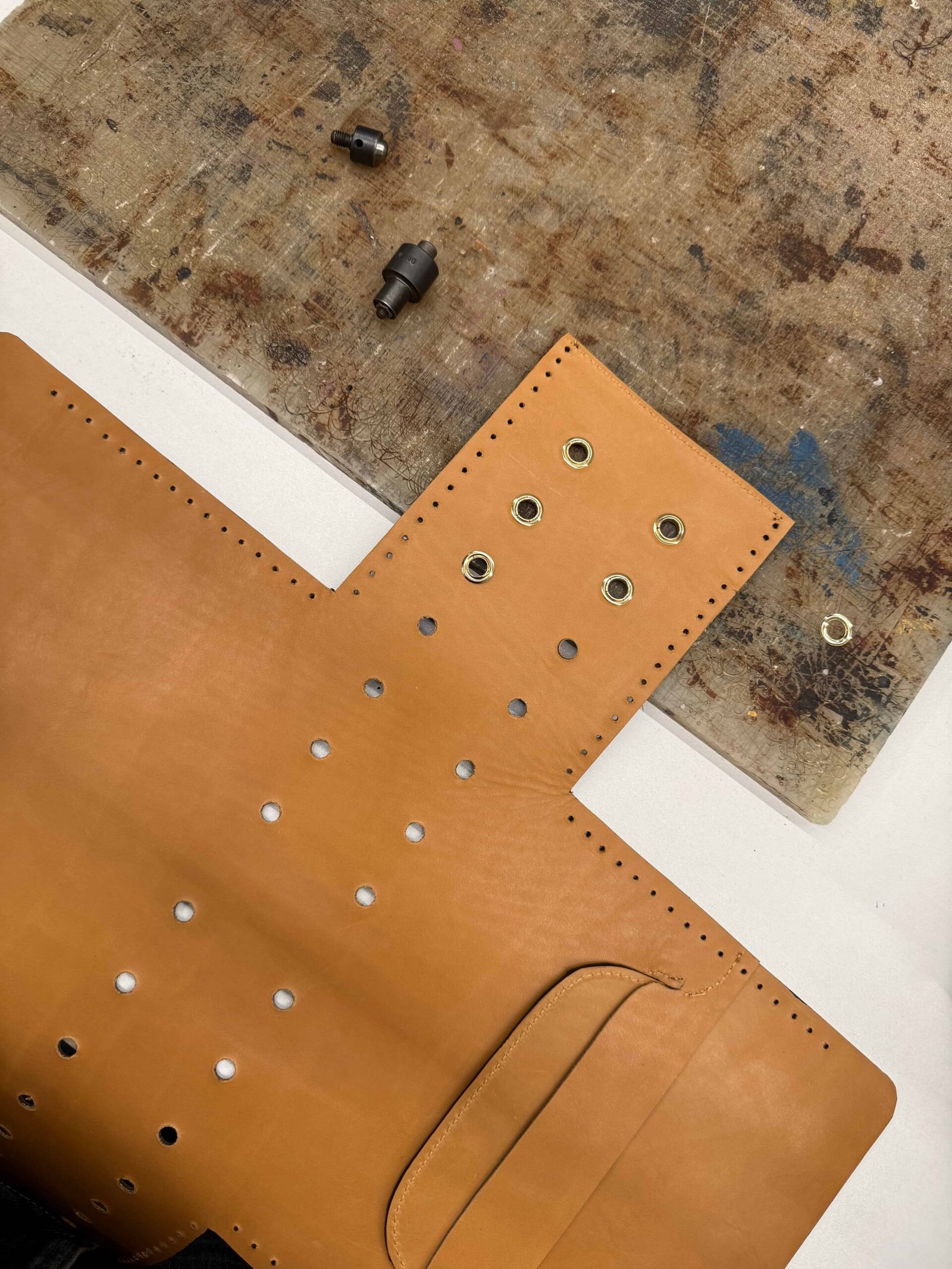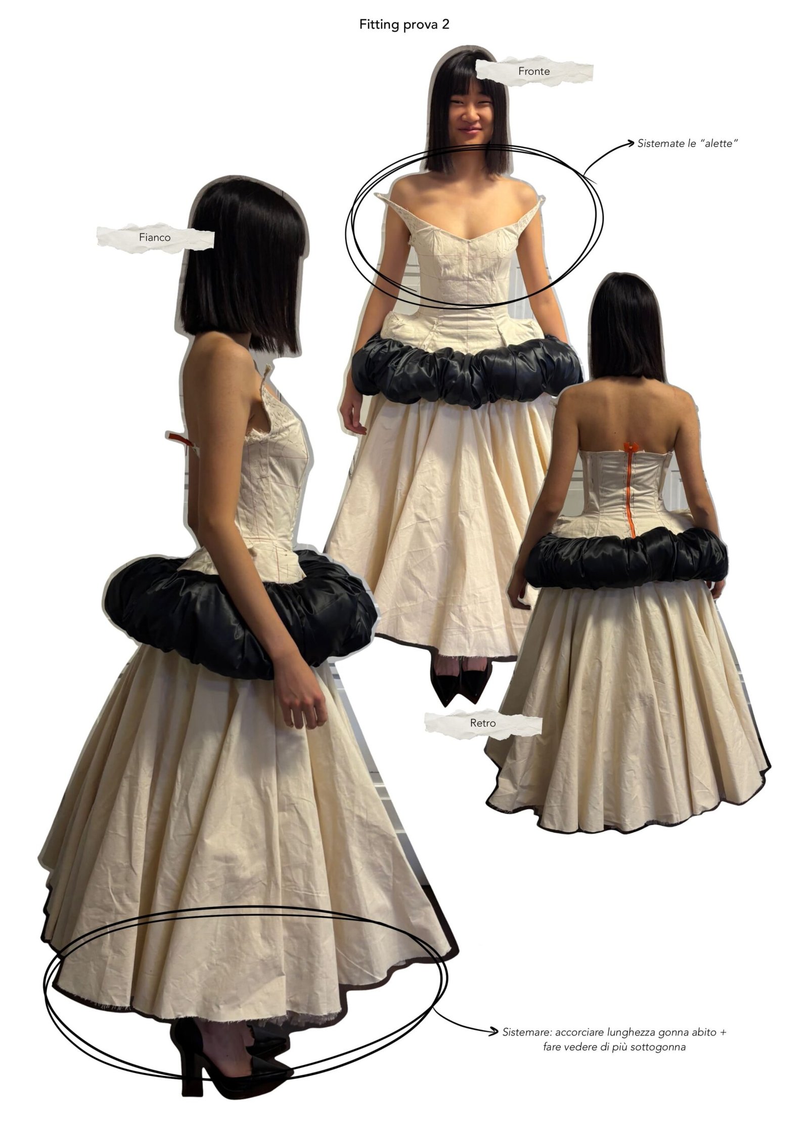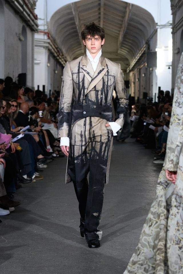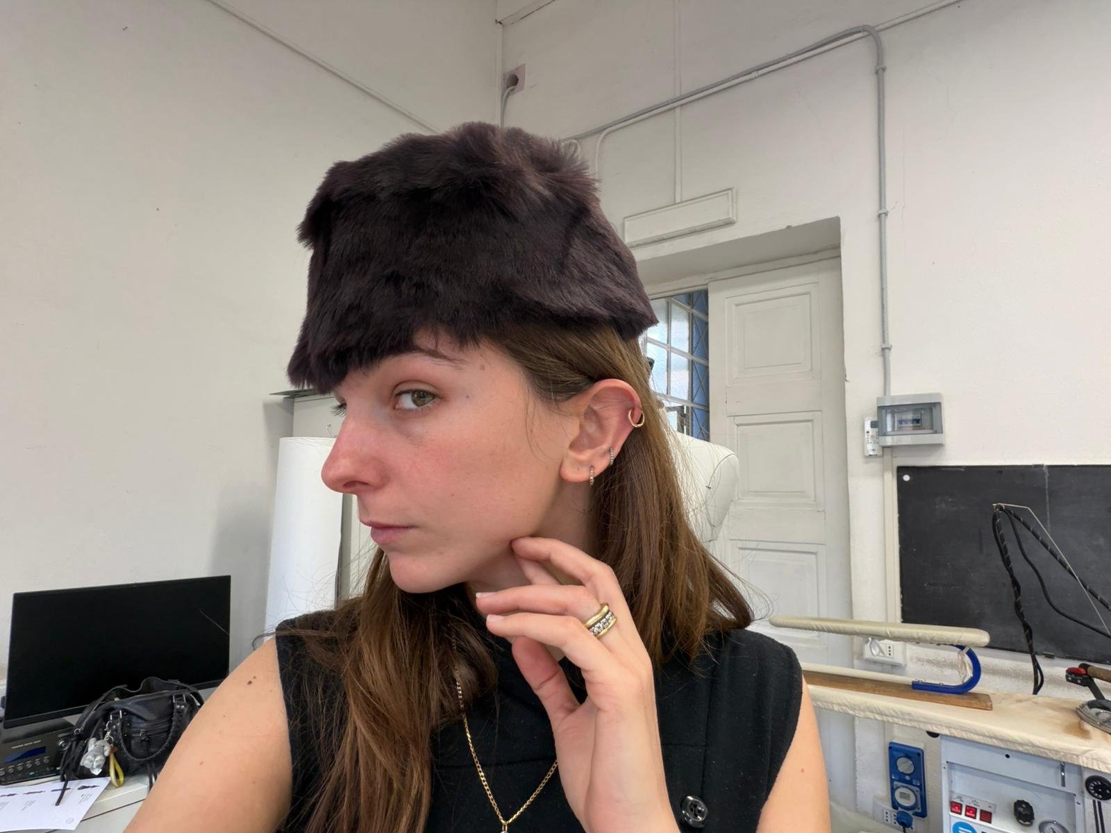 Benedetta Boidi’s collection is inspired by the concept of nomadism, explored through both a historical and iconographic investigation and a reflection on its evolution into the present day, creating a dialogue between past and future. Materiality plays a central role, with a focus on durable fabrics such as leather, alongside shearling and upcycled fur, combined with resin-coated cotton, jersey, and vintage-effect denim. Colour is equally significant, particularly in look one, where three different tones are intentionally combined. Collaborations with industry companies such as Goretti, for leather weaving and stud applications, and Wash Italia, for washed denim with a vintage finish and faux leather detailing, further shaped the work. Through these processes, the collection reflects a continuous exchange between materials, cultures, and time, shaping garments as evolving, nomadic identities. What concerns Boidi most about the contemporary fashion system is the increasing centralisation of creative power within large conglomerates, where brand identity appears shaped more by commercial imperatives than by genuine creative vision, and the pressure to constantly produce risks overshadowing experimentation and research. She is also unsettled by the speed at which the system now operates, with accelerated production cycles and continuous collections leaving little room for reflection and depth. Yet this awareness is exactly what drives her: she enters the field with clarity and intention, fully conscious of its contradictions, believing strongly in the value of personal vision, in research as a necessary process, and in fashion as a form of critical and cultural expression.