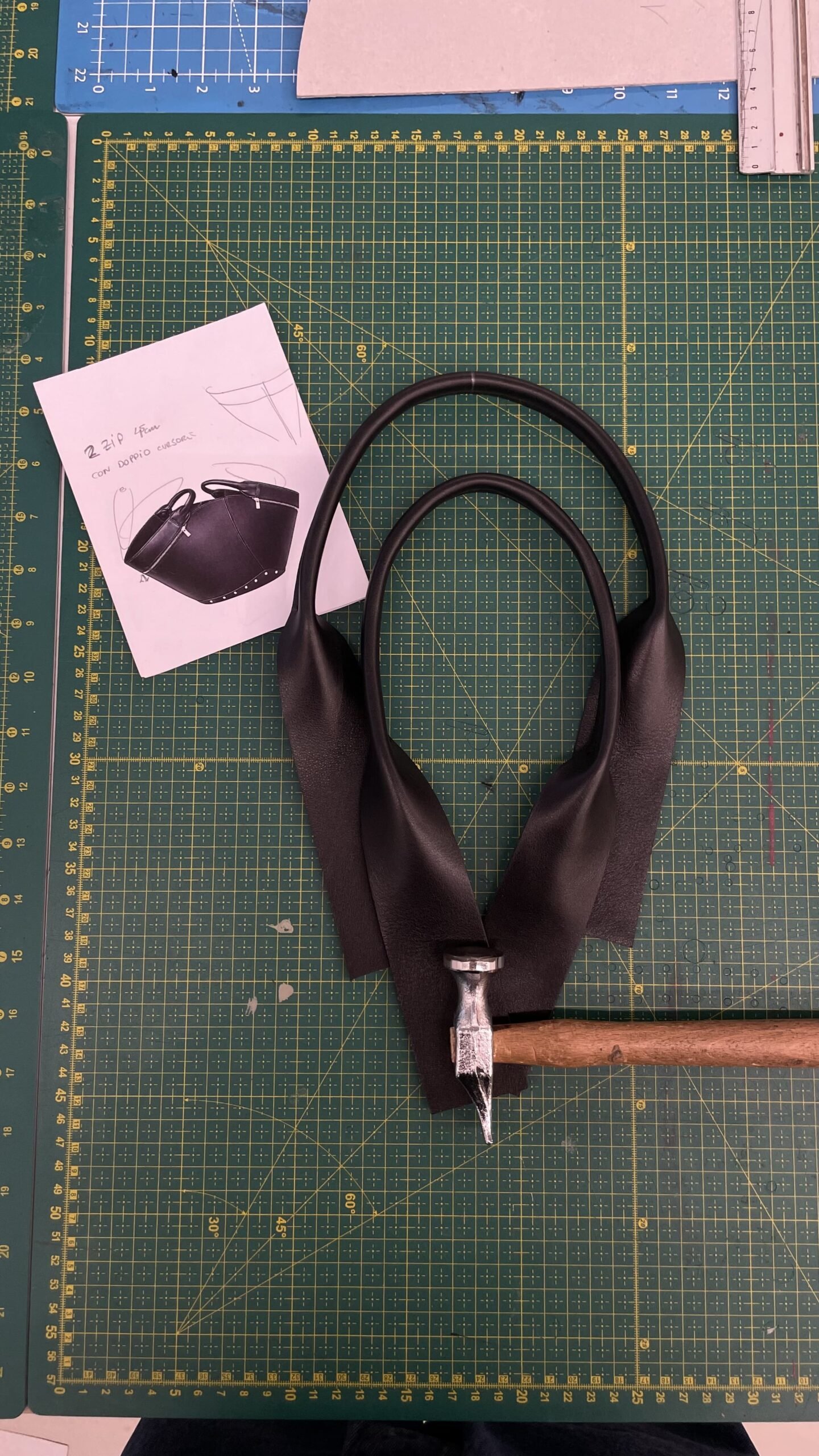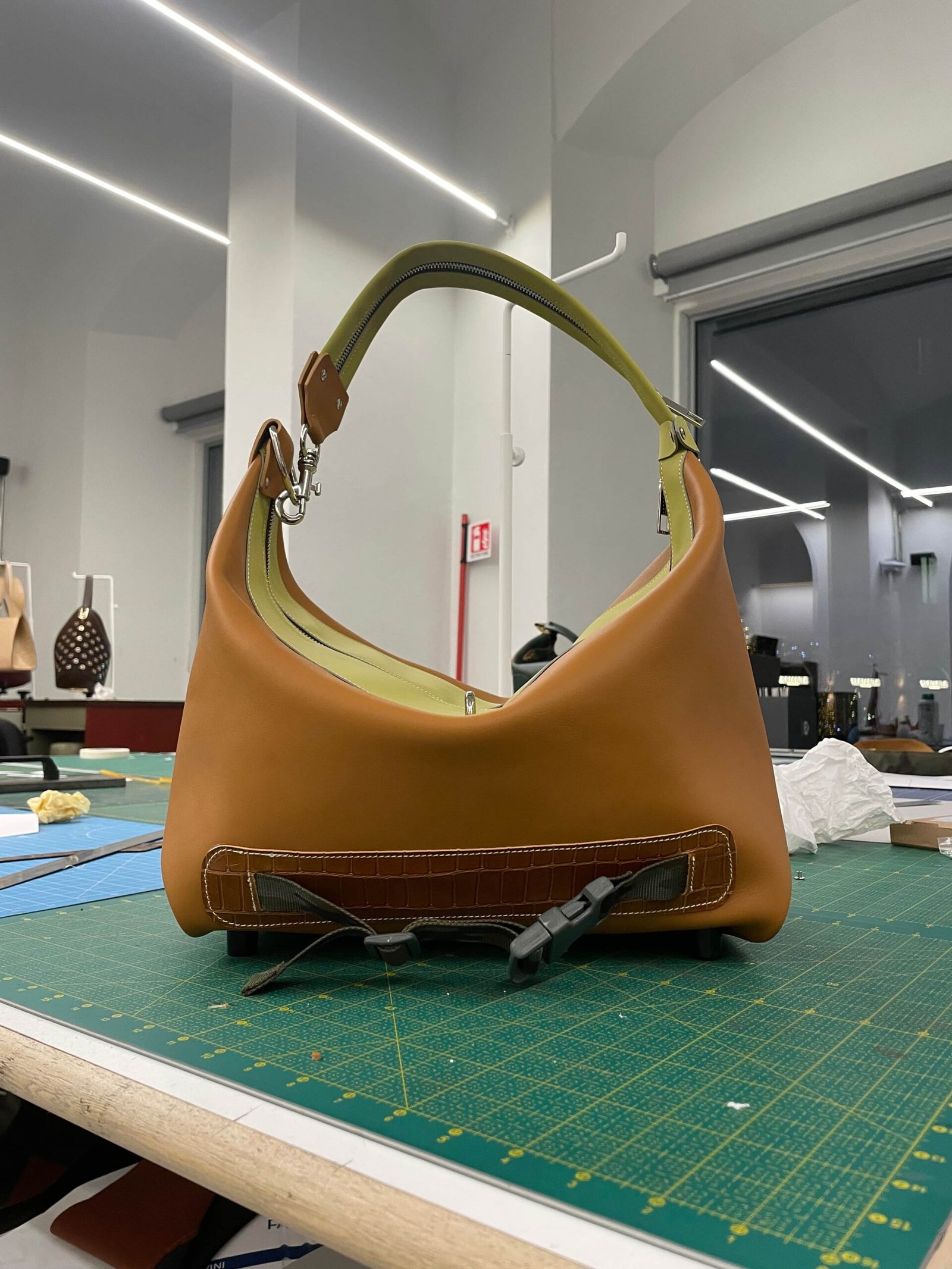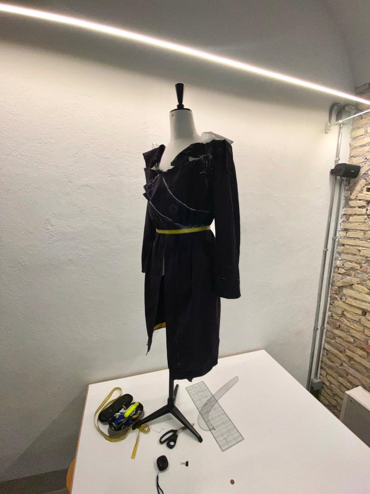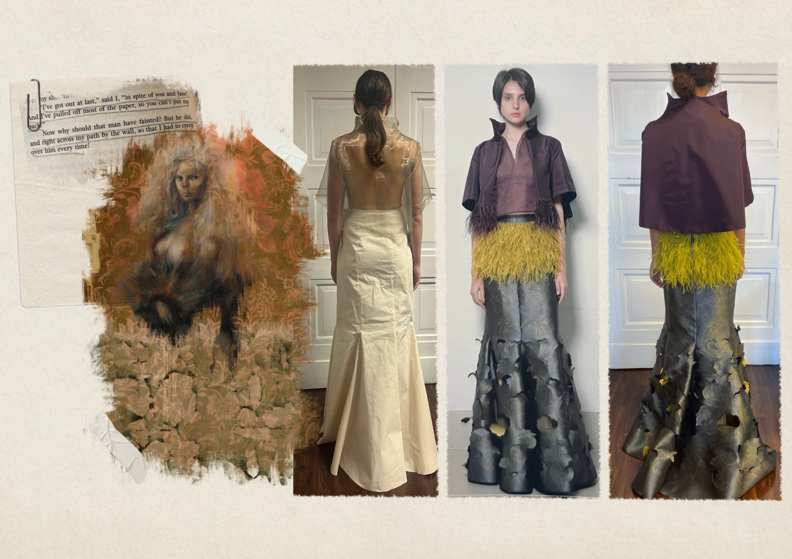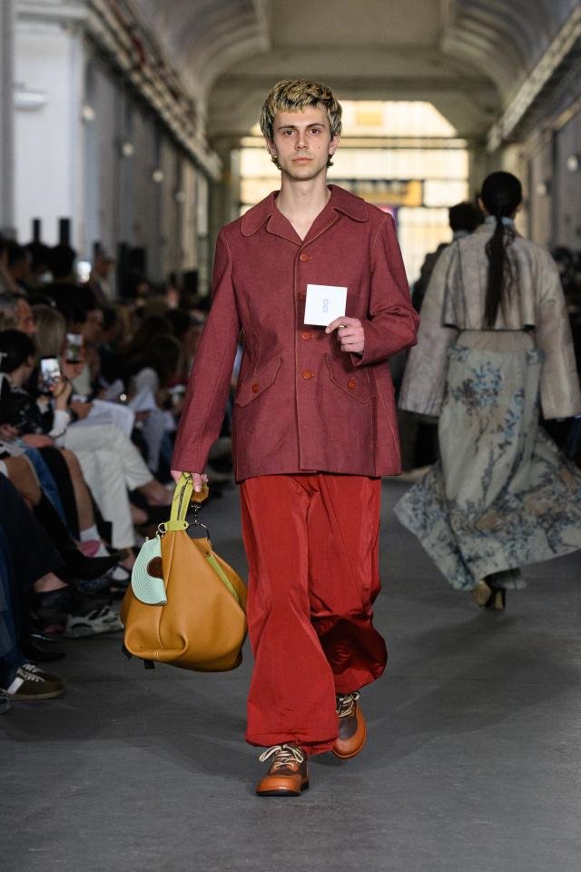 Benedetta Boidi’s collection is inspired by the concept of nomadism, explored through both a historical and iconographic investigation and a reflection on its evolution into the present day, creating a dialogue between past and future. Materiality plays a central role, with a focus on durable fabrics such as leather, alongside shearling and upcycled fur, combined with resin-coated cotton, jersey, and vintage-effect denim. Colour is equally significant, particularly in look one, where three different tones are intentionally combined. Collaborations with industry companies such as Goretti, for leather weaving and stud applications, and Wash Italia, for washed denim with a vintage finish and faux leather detailing, further shaped the work. Through these processes, the collection reflects a continuous exchange between materials, cultures, and time, shaping garments as evolving, nomadic identities. What concerns Boidi most about the contemporary fashion system is the increasing centralisation of creative power within large conglomerates, where brand identity appears shaped more by commercial imperatives than by genuine creative vision, and the pressure to constantly produce risks overshadowing experimentation and research. She is also unsettled by the speed at which the system now operates, with accelerated production cycles and continuous collections leaving little room for reflection and depth. Yet this awareness is exactly what drives her: she enters the field with clarity and intention, fully conscious of its contradictions, believing strongly in the value of personal vision, in research as a necessary process, and in fashion as a form of critical and cultural expression.