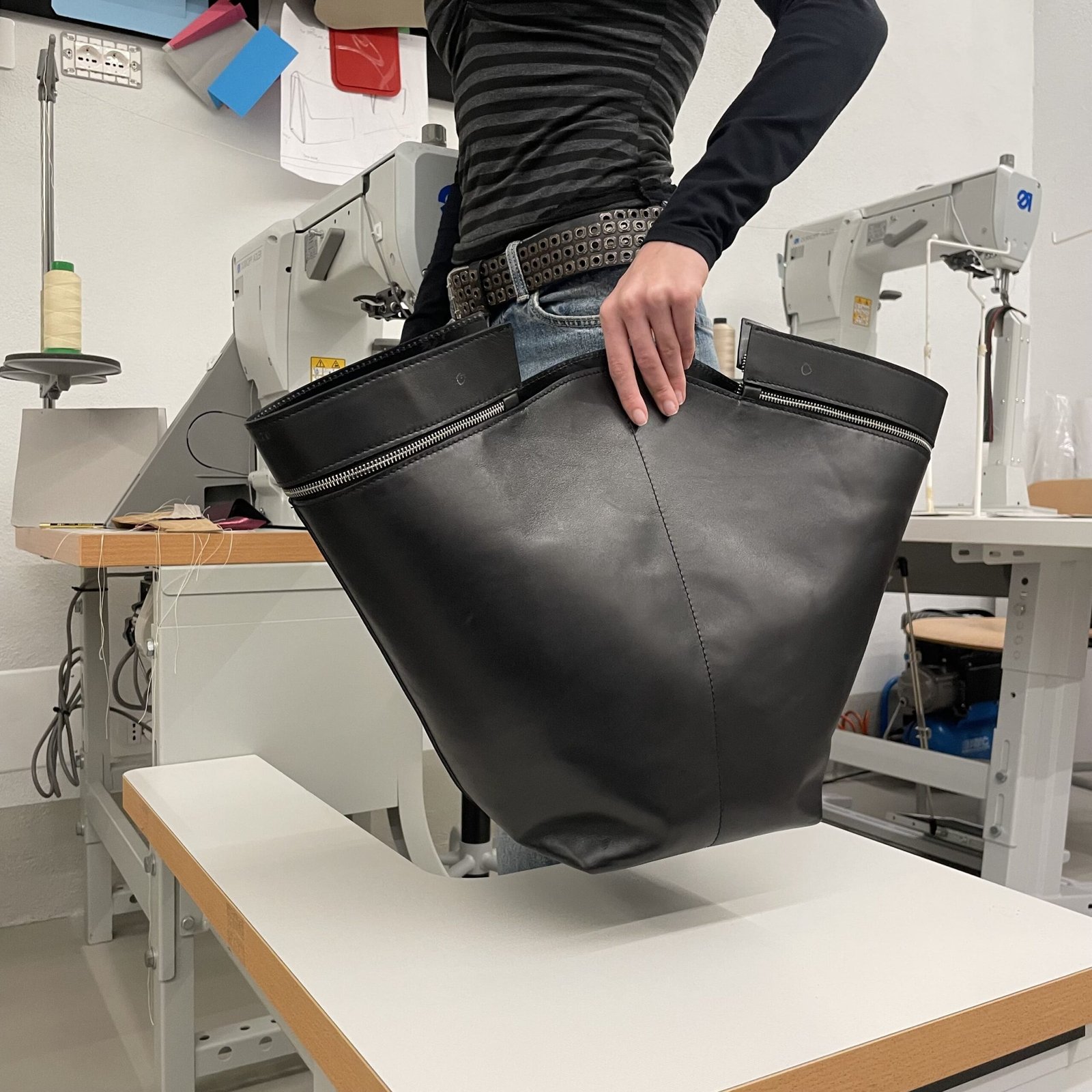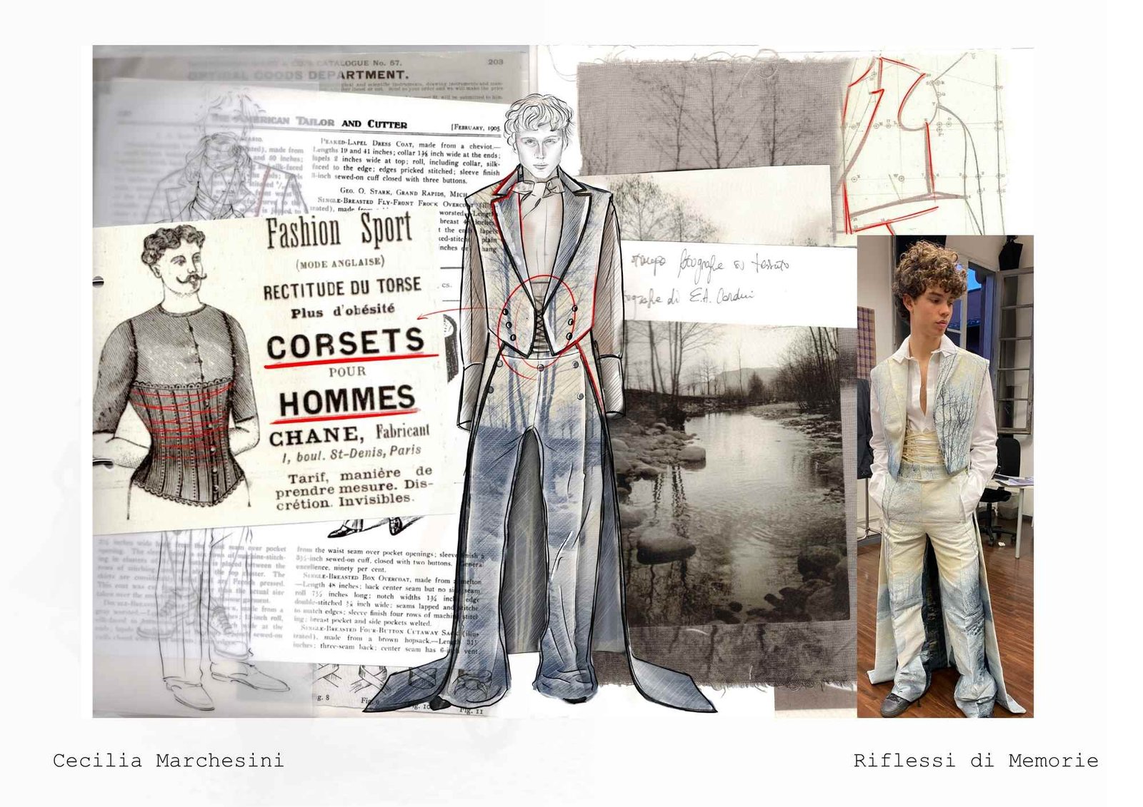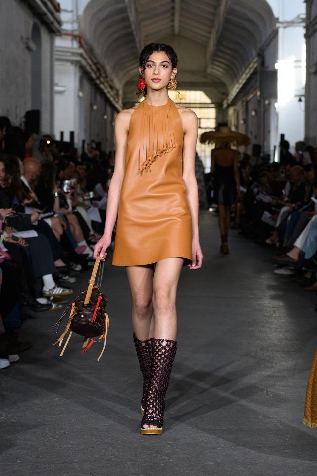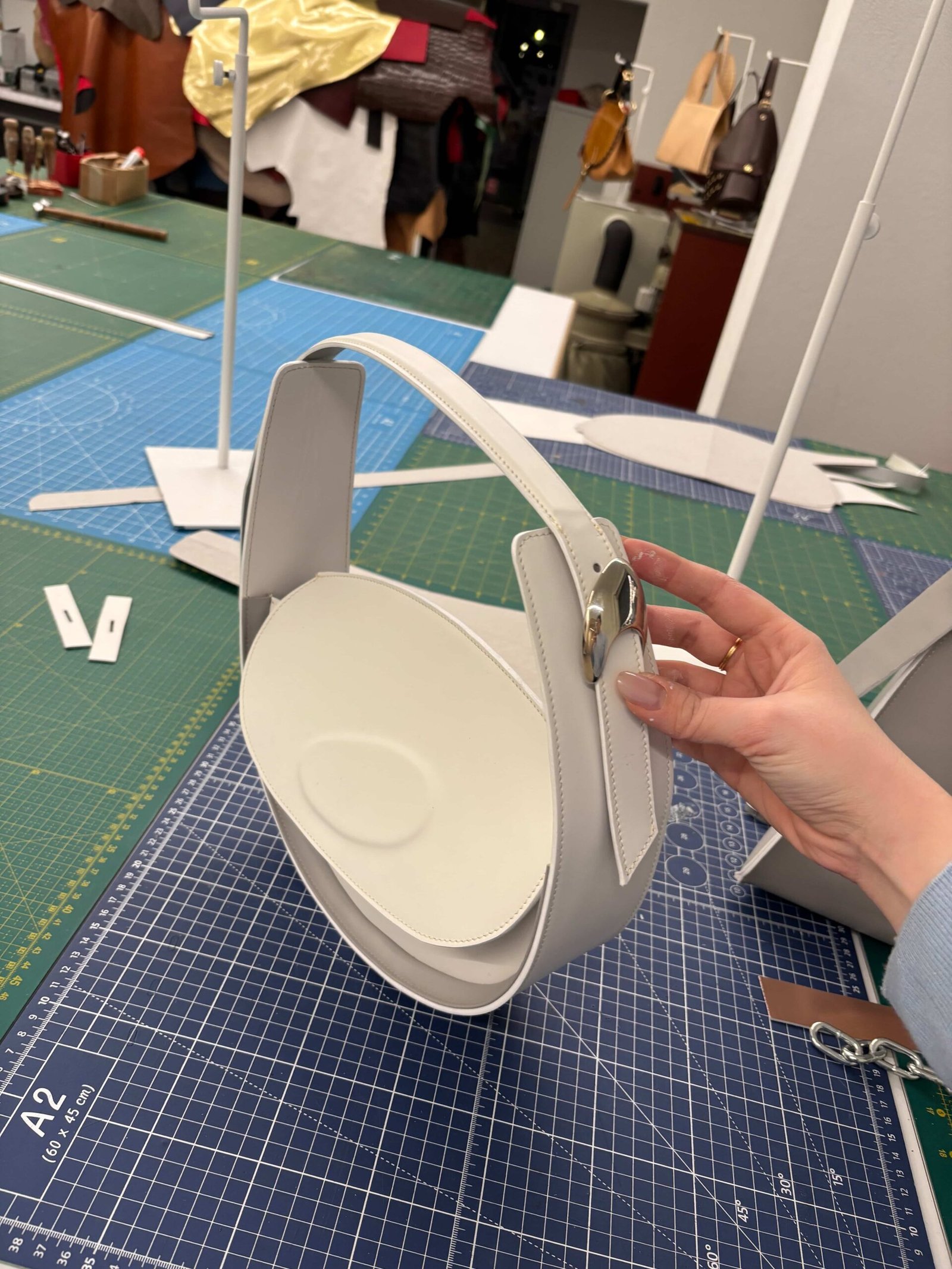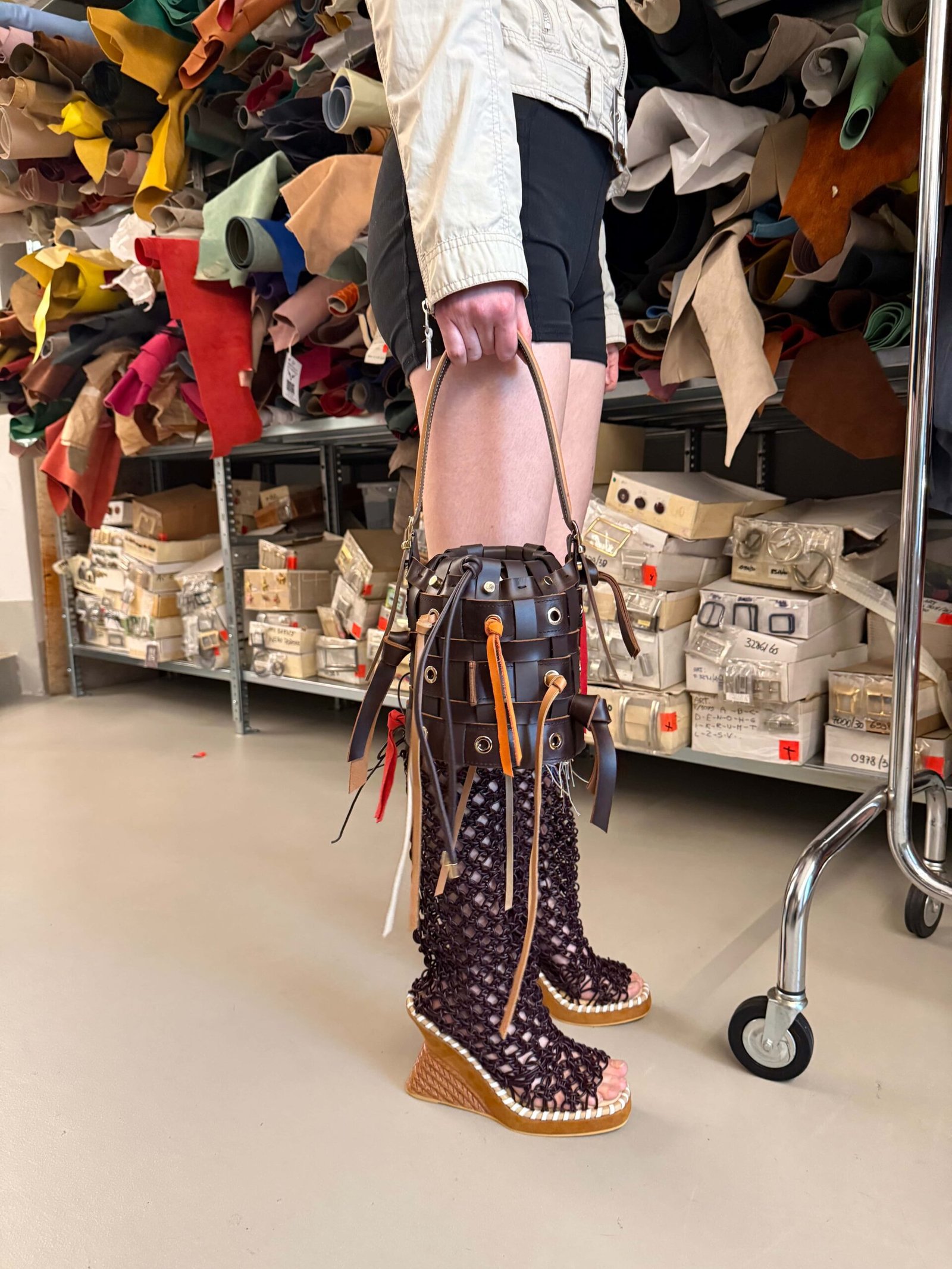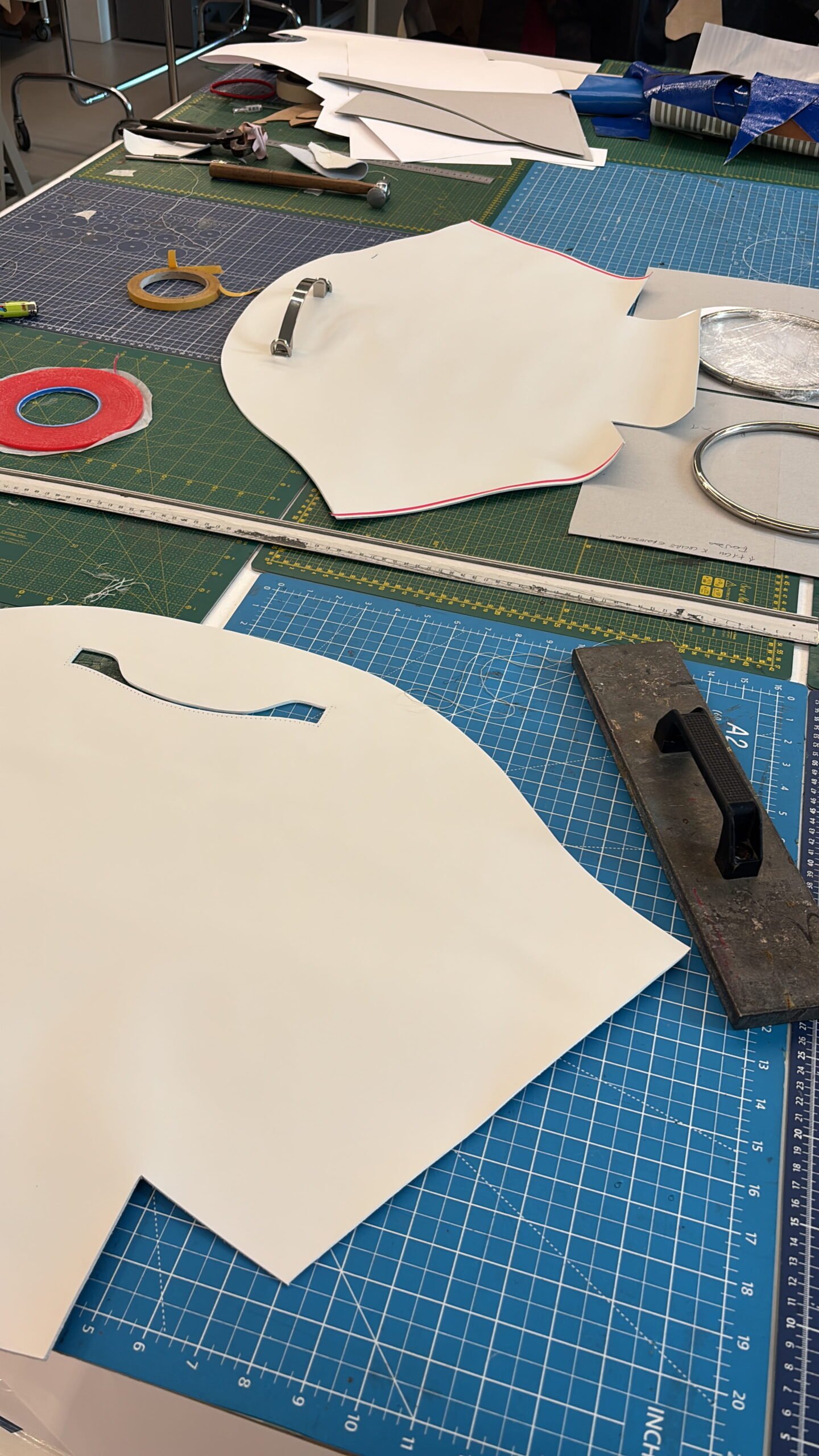 Benedetta Boidi’s collection is inspired by the concept of nomadism, explored through both a historical and iconographic investigation and a reflection on its evolution into the present day, creating a dialogue between past and future. Materiality plays a central role, with a focus on durable fabrics such as leather, alongside shearling and upcycled fur, combined with resin-coated cotton, jersey, and vintage-effect denim. Colour is equally significant, particularly in look one, where three different tones are intentionally combined. Collaborations with industry companies such as Goretti, for leather weaving and stud applications, and Wash Italia, for washed denim with a vintage finish and faux leather detailing, further shaped the work. Through these processes, the collection reflects a continuous exchange between materials, cultures, and time, shaping garments as evolving, nomadic identities. What concerns Boidi most about the contemporary fashion system is the increasing centralisation of creative power within large conglomerates, where brand identity appears shaped more by commercial imperatives than by genuine creative vision, and the pressure to constantly produce risks overshadowing experimentation and research. She is also unsettled by the speed at which the system now operates, with accelerated production cycles and continuous collections leaving little room for reflection and depth. Yet this awareness is exactly what drives her: she enters the field with clarity and intention, fully conscious of its contradictions, believing strongly in the value of personal vision, in research as a necessary process, and in fashion as a form of critical and cultural expression.