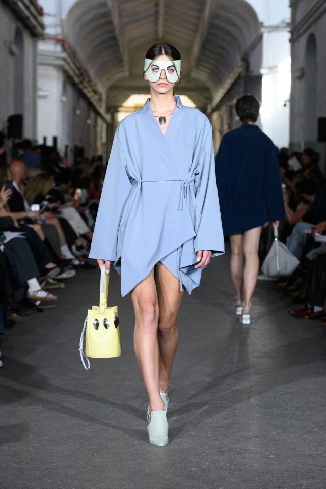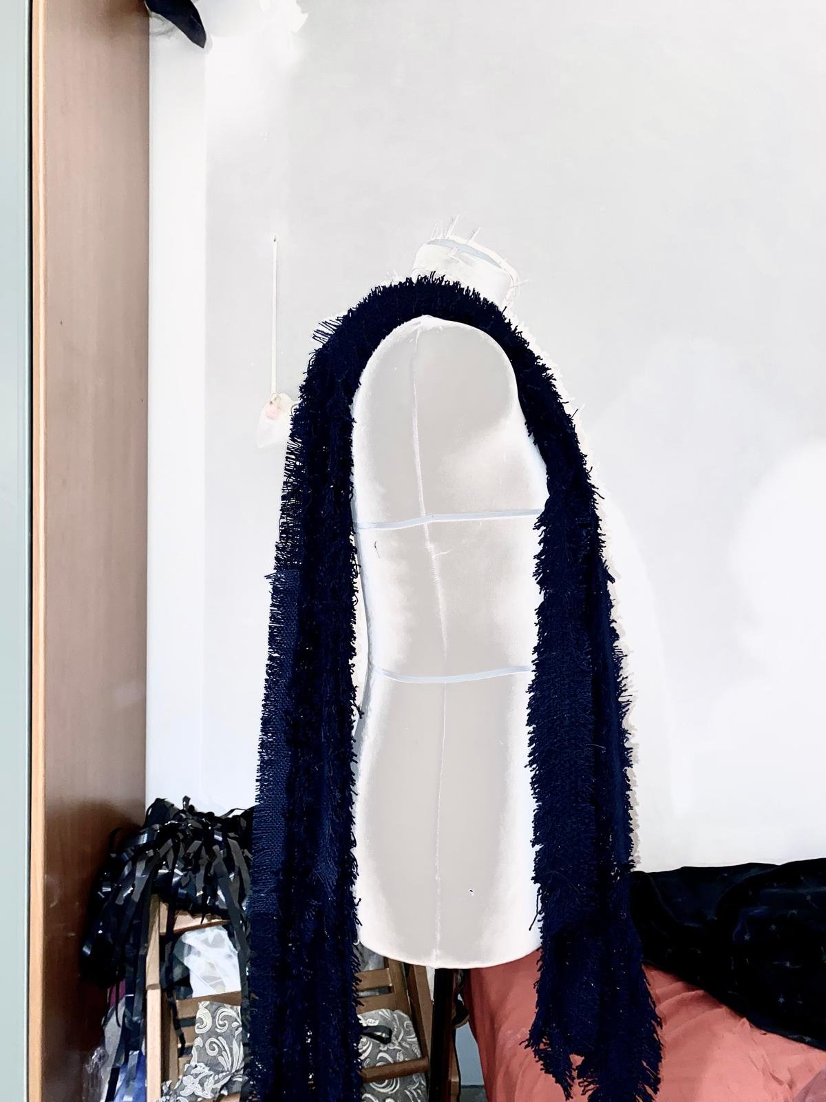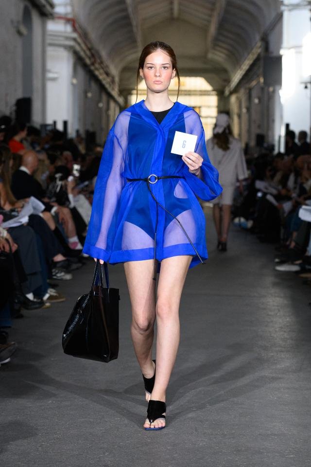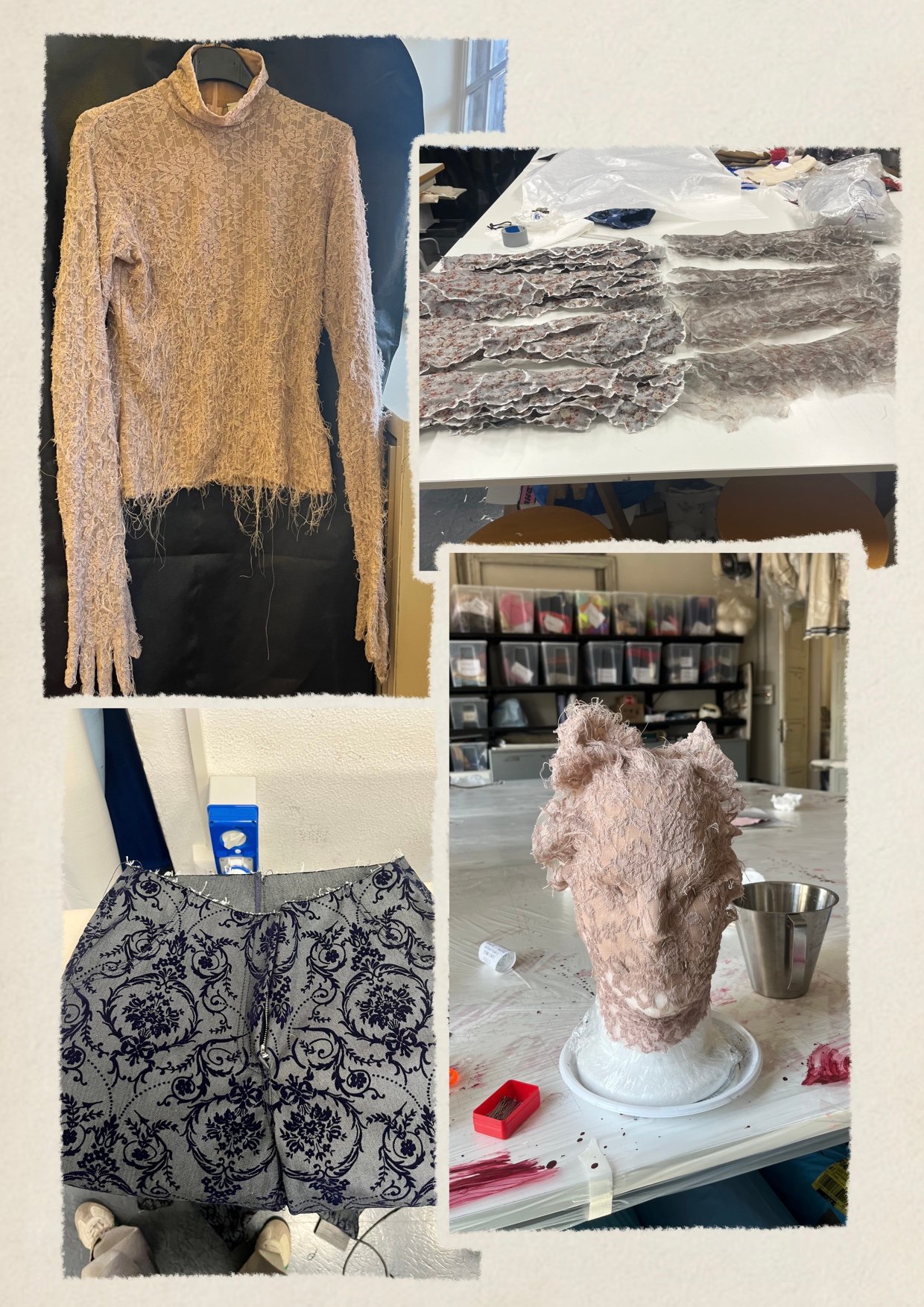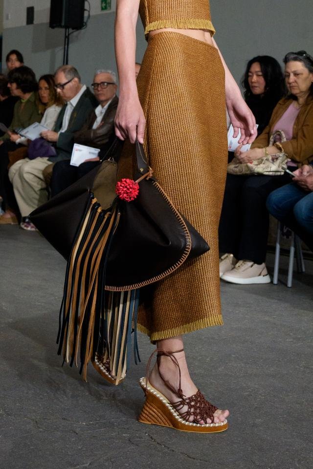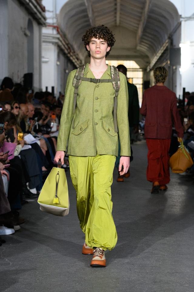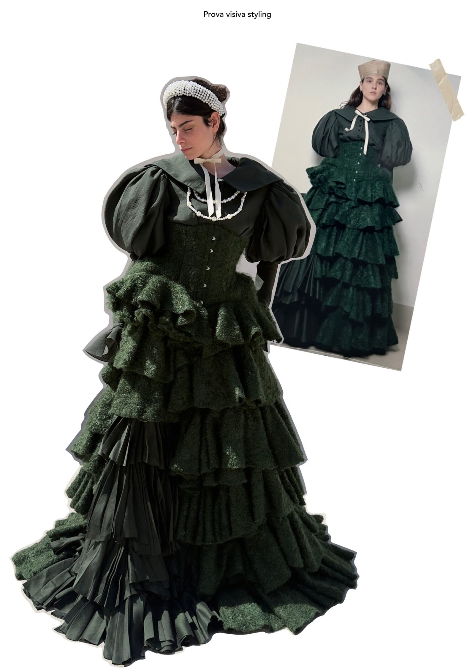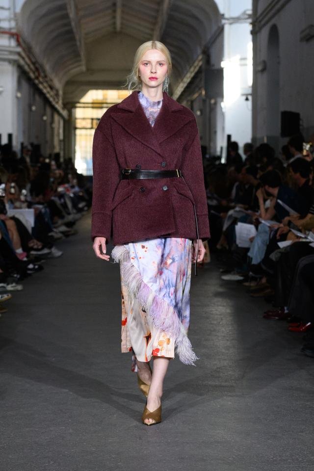Benedetta Boidi’s collection is inspired by the concept of nomadism, explored through both a historical and iconographic investigation and a reflection on its evolution into the present day, creating a dialogue between past and future. Materiality plays a central role, with a focus on durable fabrics such as leather, alongside shearling and upcycled fur, combined with resin-coated cotton, jersey, and vintage-effect denim. Colour is equally significant, particularly in look one, where three different tones are intentionally combined. Collaborations with industry companies such as Goretti, for leather weaving and stud applications, and Wash Italia, for washed denim with a vintage finish and faux leather detailing, further shaped the work. Through these processes, the collection reflects a continuous exchange between materials, cultures, and time, shaping garments as evolving, nomadic identities. What concerns Boidi most about the contemporary fashion system is the increasing centralisation of creative power within large conglomerates, where brand identity appears shaped more by commercial imperatives than by genuine creative vision, and the pressure to constantly produce risks overshadowing experimentation and research. She is also unsettled by the speed at which the system now operates, with accelerated production cycles and continuous collections leaving little room for reflection and depth. Yet this awareness is exactly what drives her: she enters the field with clarity and intention, fully conscious of its contradictions, believing strongly in the value of personal vision, in research as a necessary process, and in fashion as a form of critical and cultural expression.