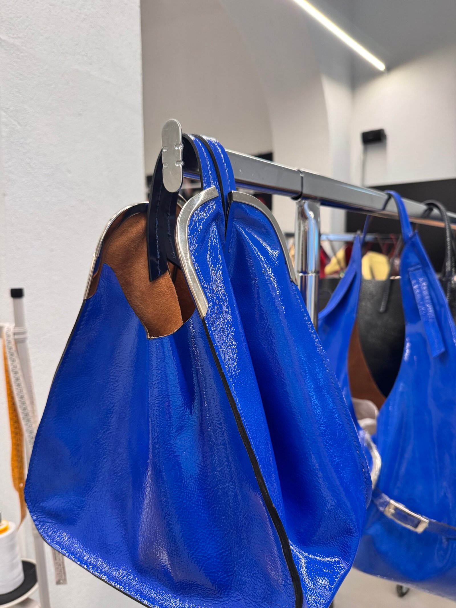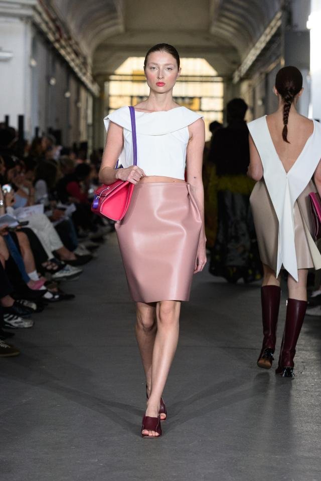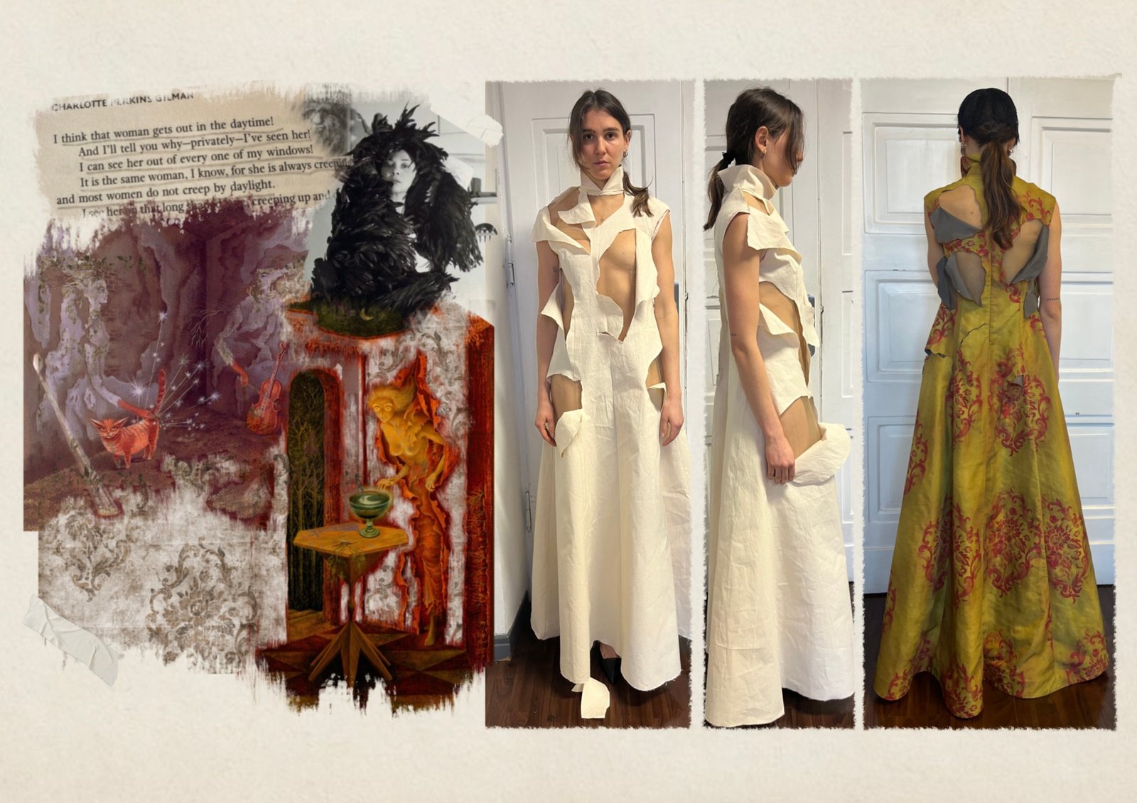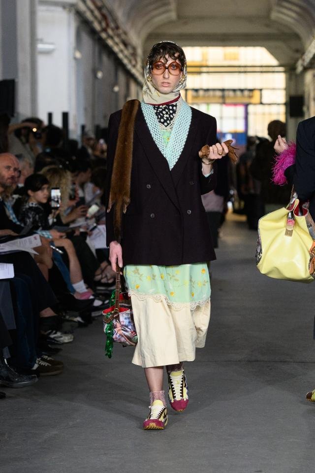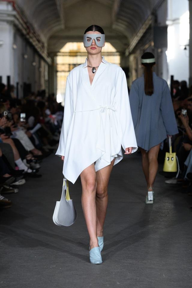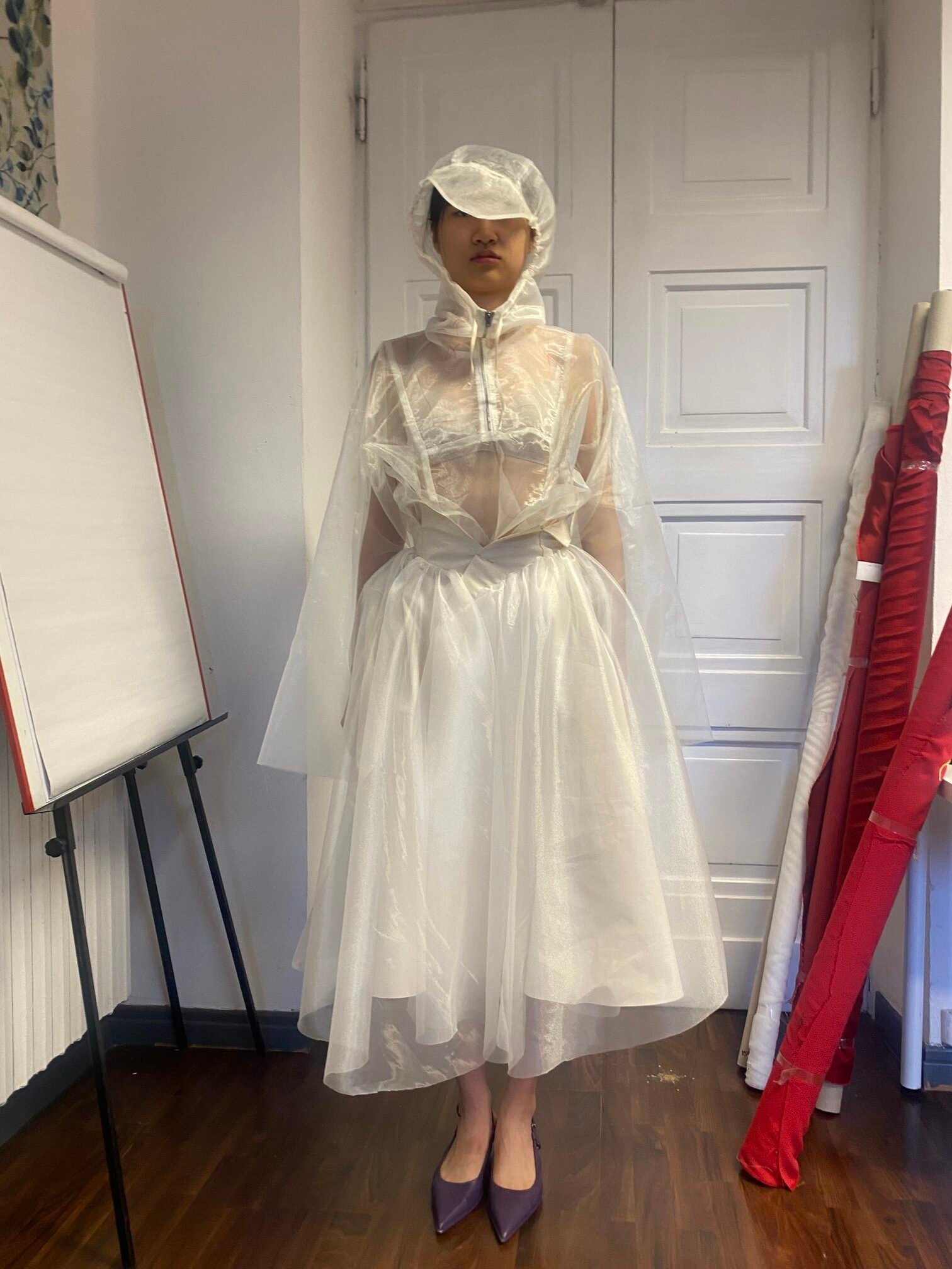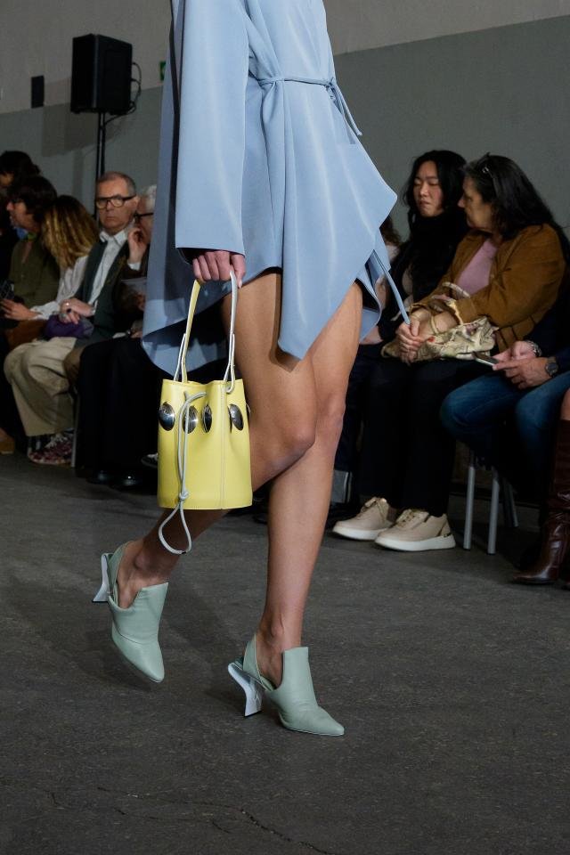 Benedetta Boidi’s collection is inspired by the concept of nomadism, explored through both a historical and iconographic investigation and a reflection on its evolution into the present day, creating a dialogue between past and future. Materiality plays a central role, with a focus on durable fabrics such as leather, alongside shearling and upcycled fur, combined with resin-coated cotton, jersey, and vintage-effect denim. Colour is equally significant, particularly in look one, where three different tones are intentionally combined. Collaborations with industry companies such as Goretti, for leather weaving and stud applications, and Wash Italia, for washed denim with a vintage finish and faux leather detailing, further shaped the work. Through these processes, the collection reflects a continuous exchange between materials, cultures, and time, shaping garments as evolving, nomadic identities. What concerns Boidi most about the contemporary fashion system is the increasing centralisation of creative power within large conglomerates, where brand identity appears shaped more by commercial imperatives than by genuine creative vision, and the pressure to constantly produce risks overshadowing experimentation and research. She is also unsettled by the speed at which the system now operates, with accelerated production cycles and continuous collections leaving little room for reflection and depth. Yet this awareness is exactly what drives her: she enters the field with clarity and intention, fully conscious of its contradictions, believing strongly in the value of personal vision, in research as a necessary process, and in fashion as a form of critical and cultural expression.