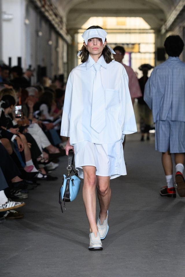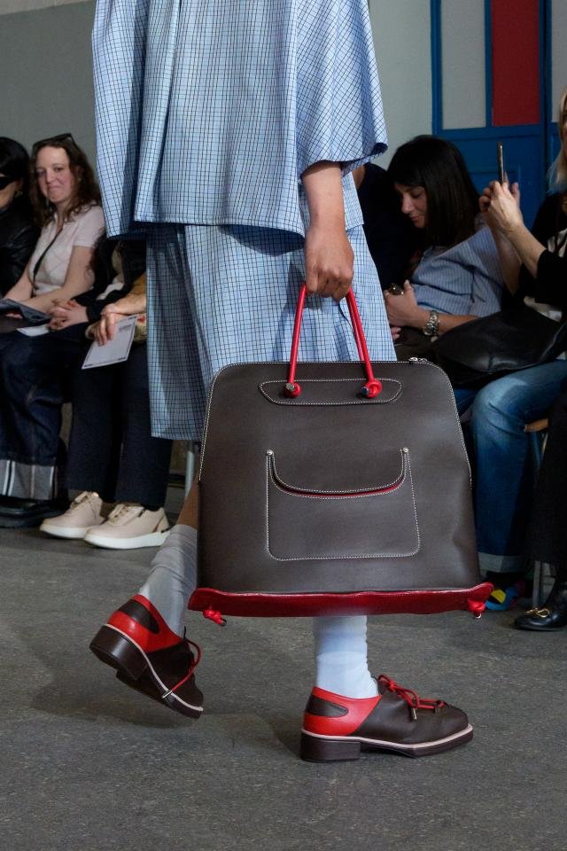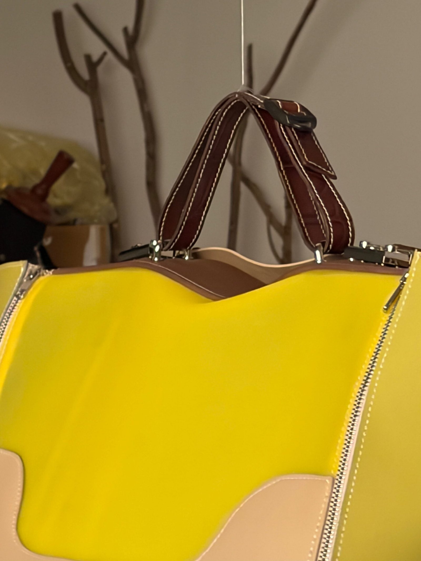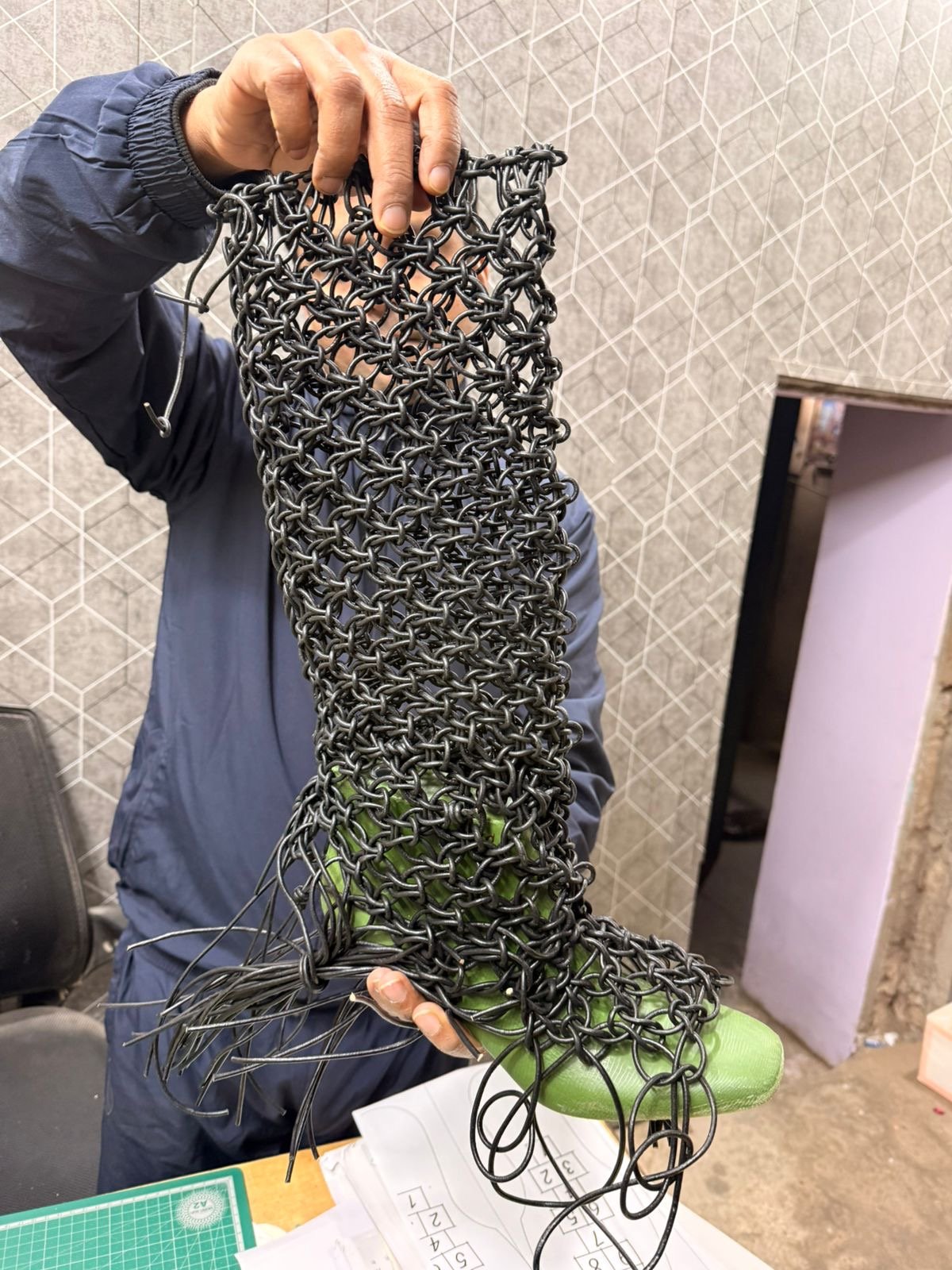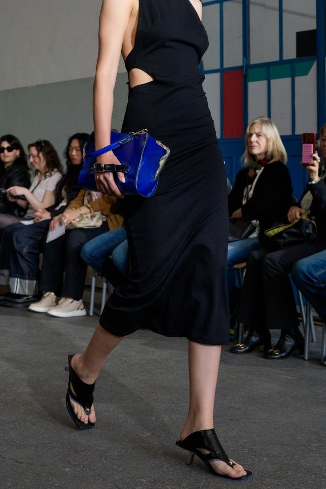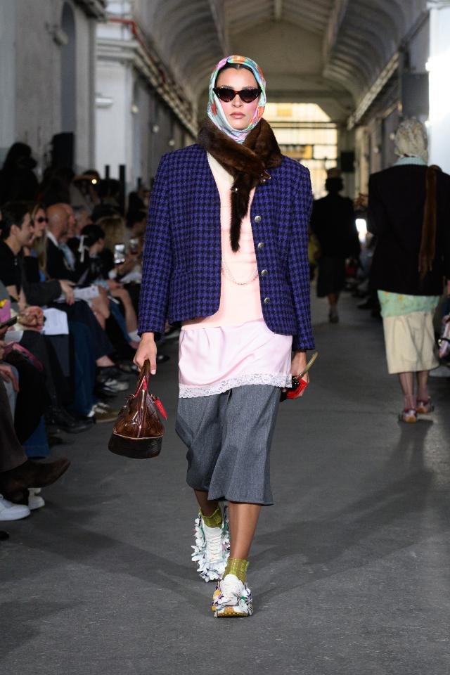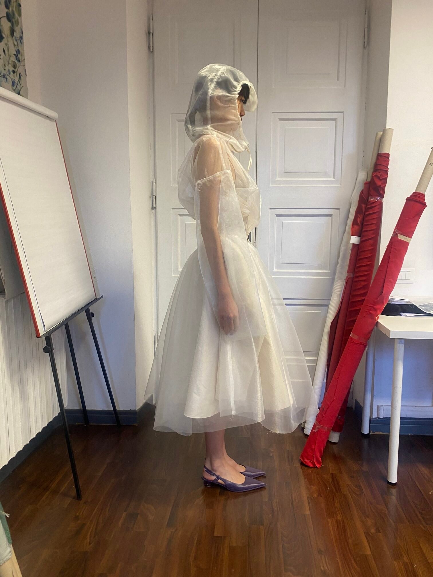 Benedetta Boidi’s collection is inspired by the concept of nomadism, explored through both a historical and iconographic investigation and a reflection on its evolution into the present day, creating a dialogue between past and future. Materiality plays a central role, with a focus on durable fabrics such as leather, alongside shearling and upcycled fur, combined with resin-coated cotton, jersey, and vintage-effect denim. Colour is equally significant, particularly in look one, where three different tones are intentionally combined. Collaborations with industry companies such as Goretti, for leather weaving and stud applications, and Wash Italia, for washed denim with a vintage finish and faux leather detailing, further shaped the work. Through these processes, the collection reflects a continuous exchange between materials, cultures, and time, shaping garments as evolving, nomadic identities. What concerns Boidi most about the contemporary fashion system is the increasing centralisation of creative power within large conglomerates, where brand identity appears shaped more by commercial imperatives than by genuine creative vision, and the pressure to constantly produce risks overshadowing experimentation and research. She is also unsettled by the speed at which the system now operates, with accelerated production cycles and continuous collections leaving little room for reflection and depth. Yet this awareness is exactly what drives her: she enters the field with clarity and intention, fully conscious of its contradictions, believing strongly in the value of personal vision, in research as a necessary process, and in fashion as a form of critical and cultural expression.