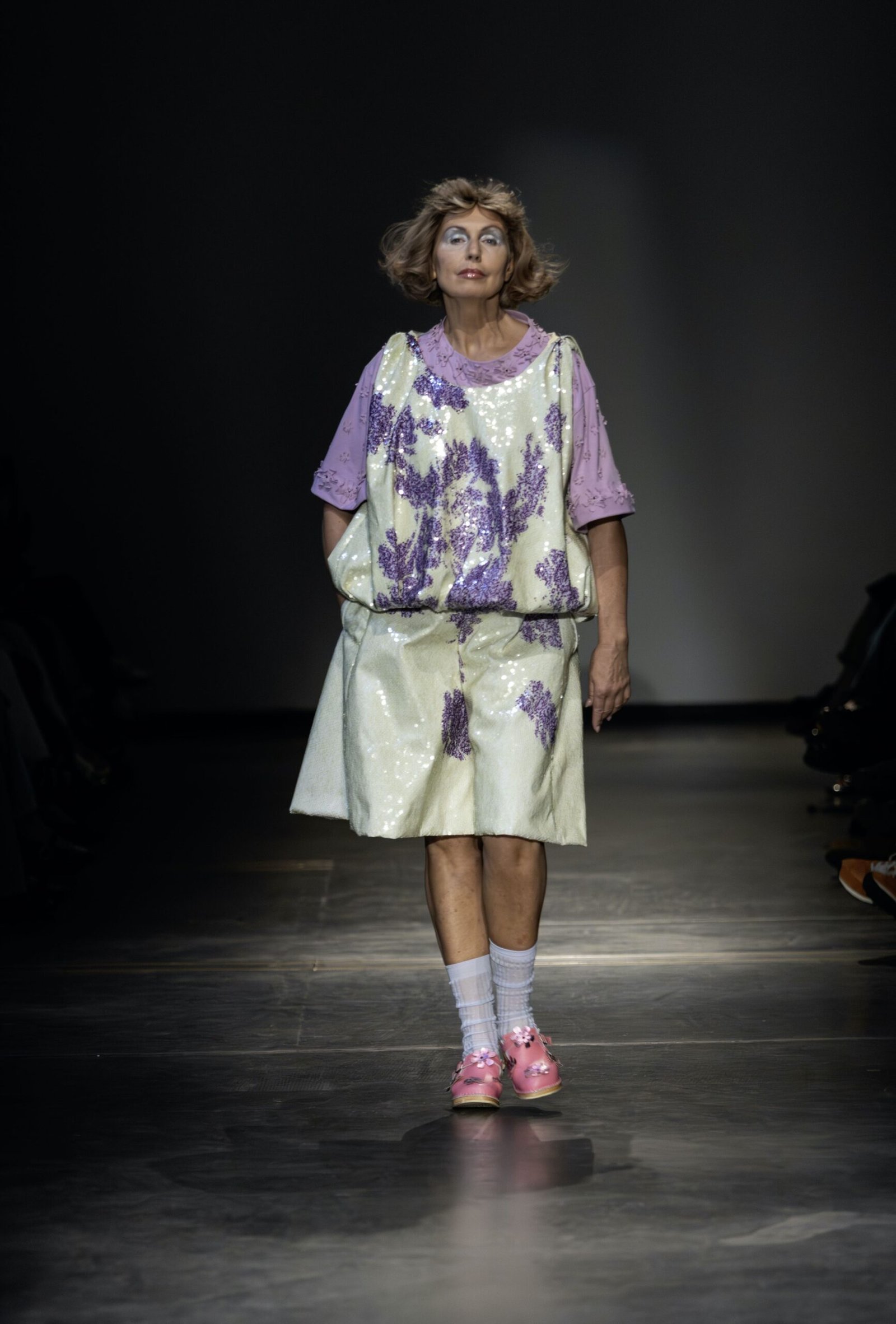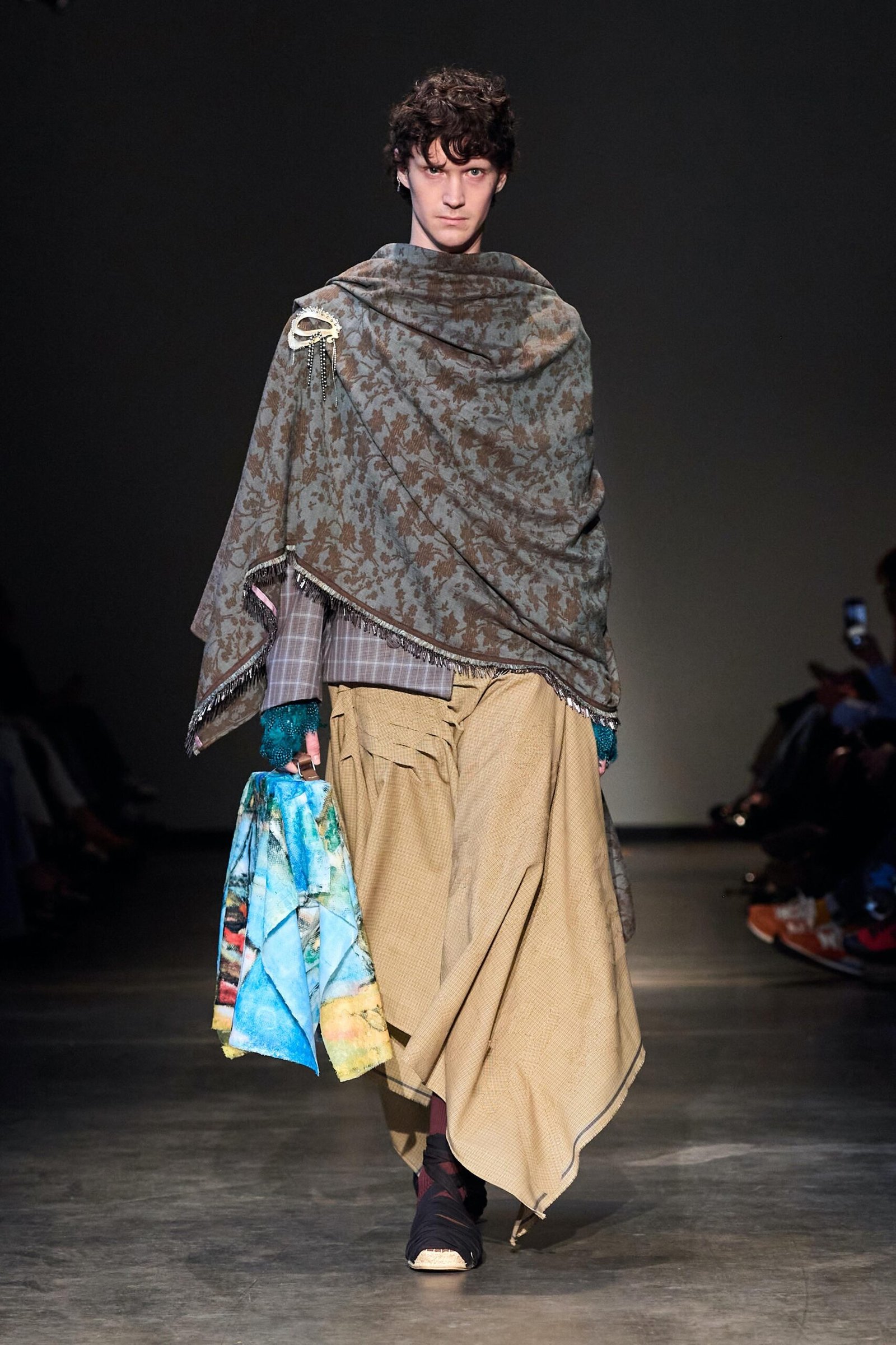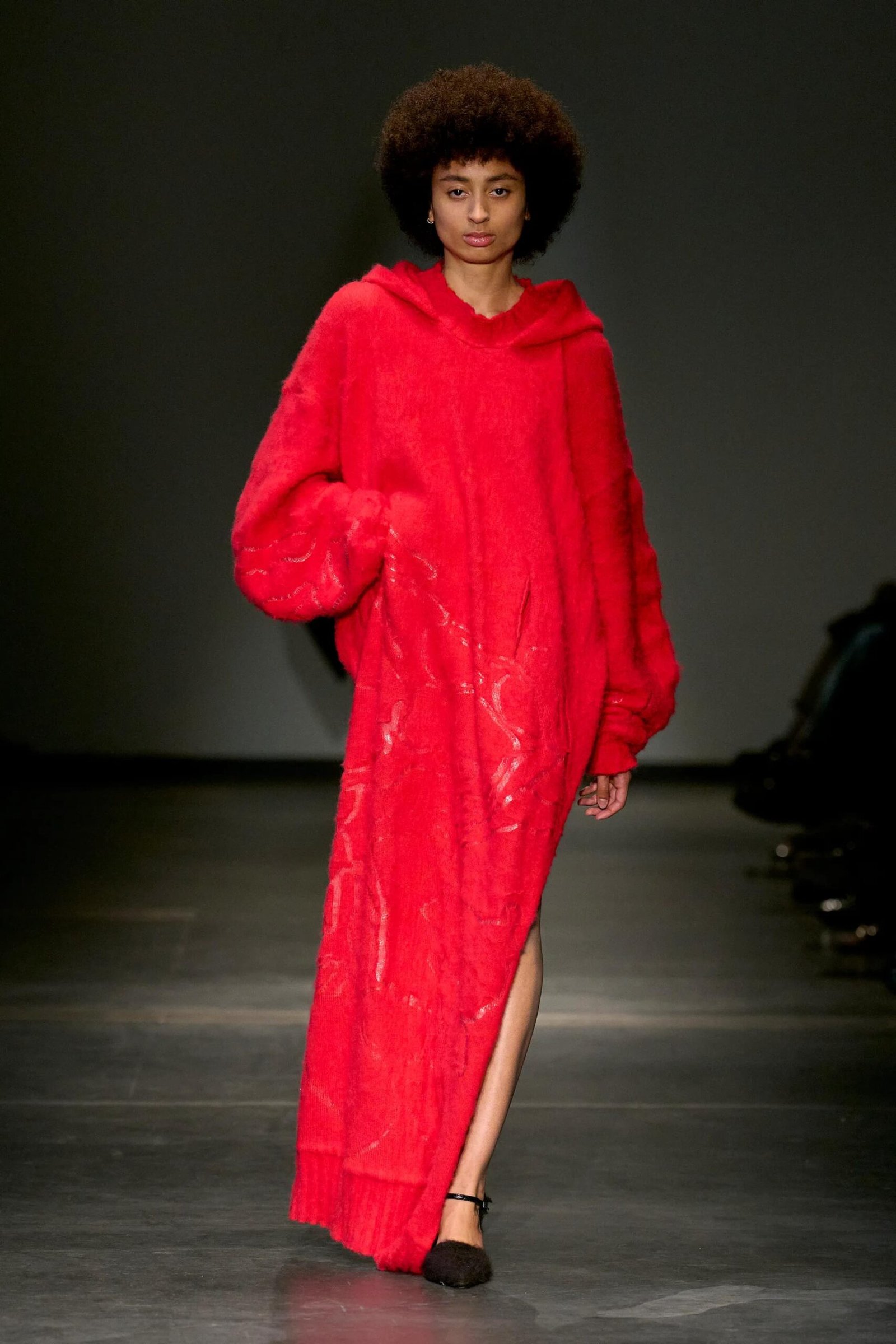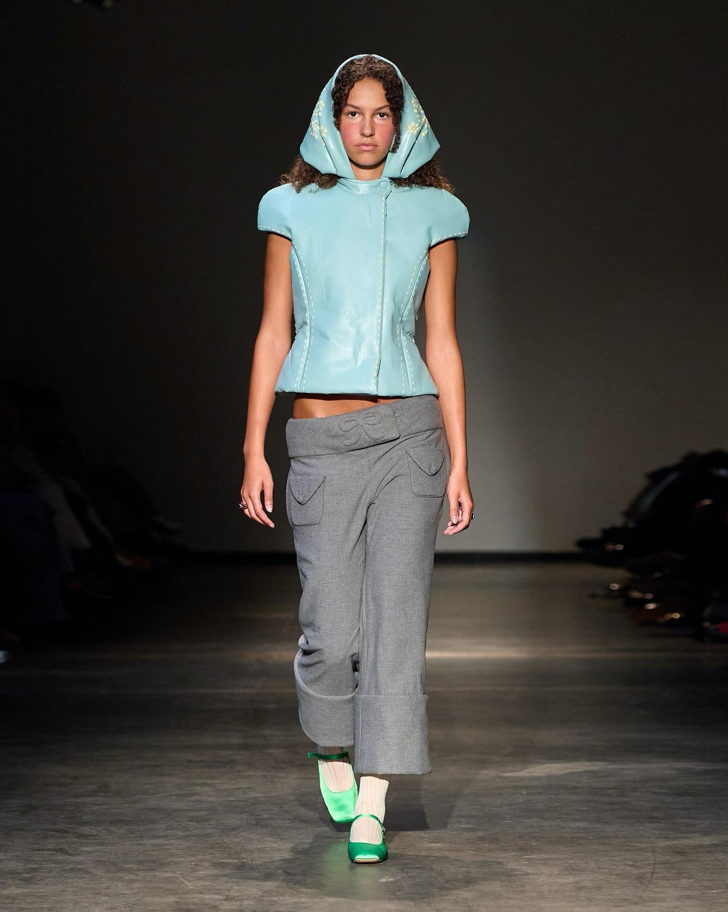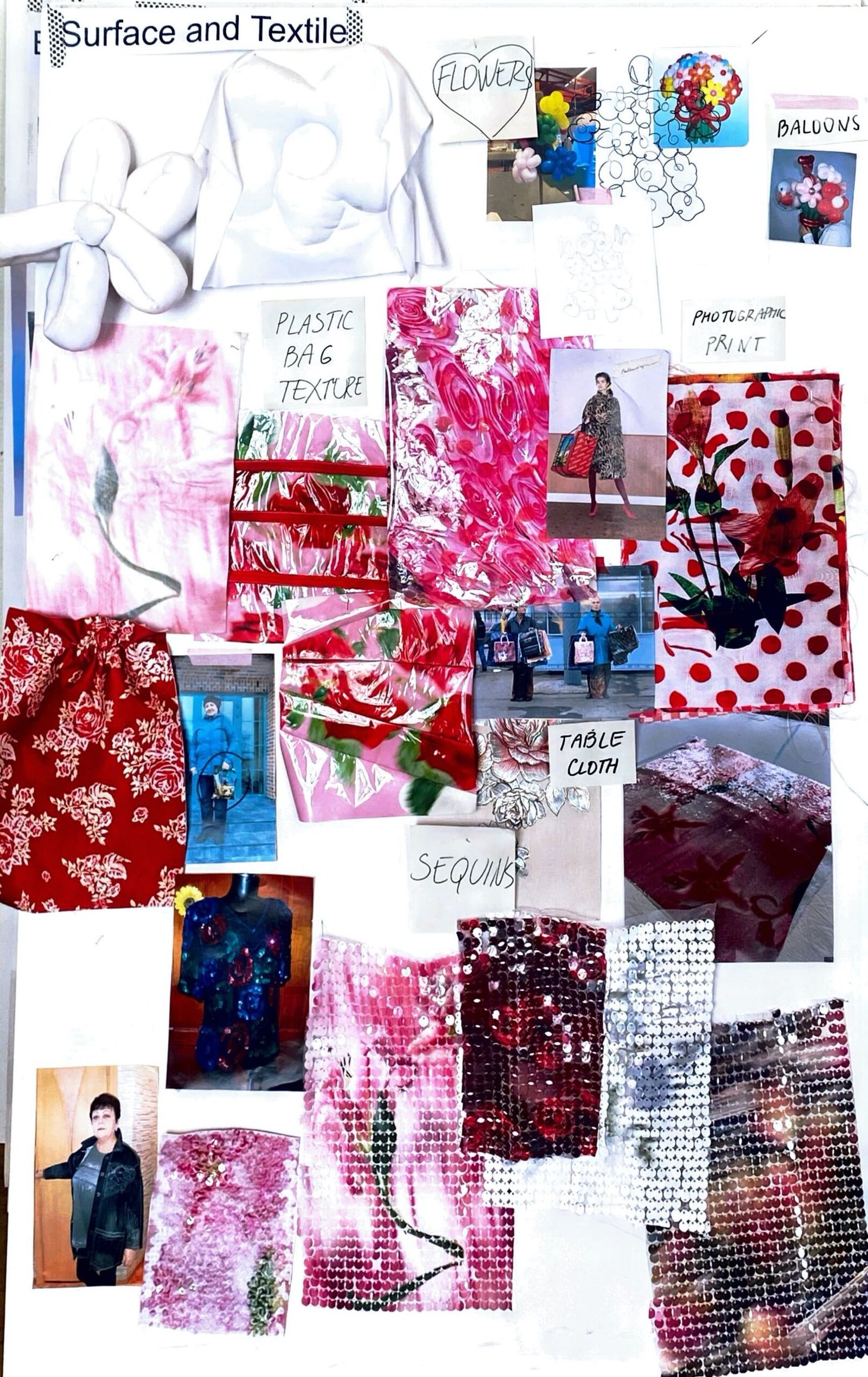 This collection combines vibrant florals, shine, and embellishment to translate the spirit of these women into a tactile language. Flowers – central to their wardrobes and culture – appear through laser-cut appliqué, foil prints, photographic prints, prints on sequins, and beading. Market bags inspired both silhouettes and materials, with plastic-coated textiles, shiny “tacky” surfaces, and kitchen tablecloths used to hold the voluminous shapes. I wanted to evoke the sensory richness of markets and banquet halls – spaces full of abundance, texture, and joy that celebrate community and togetherness.