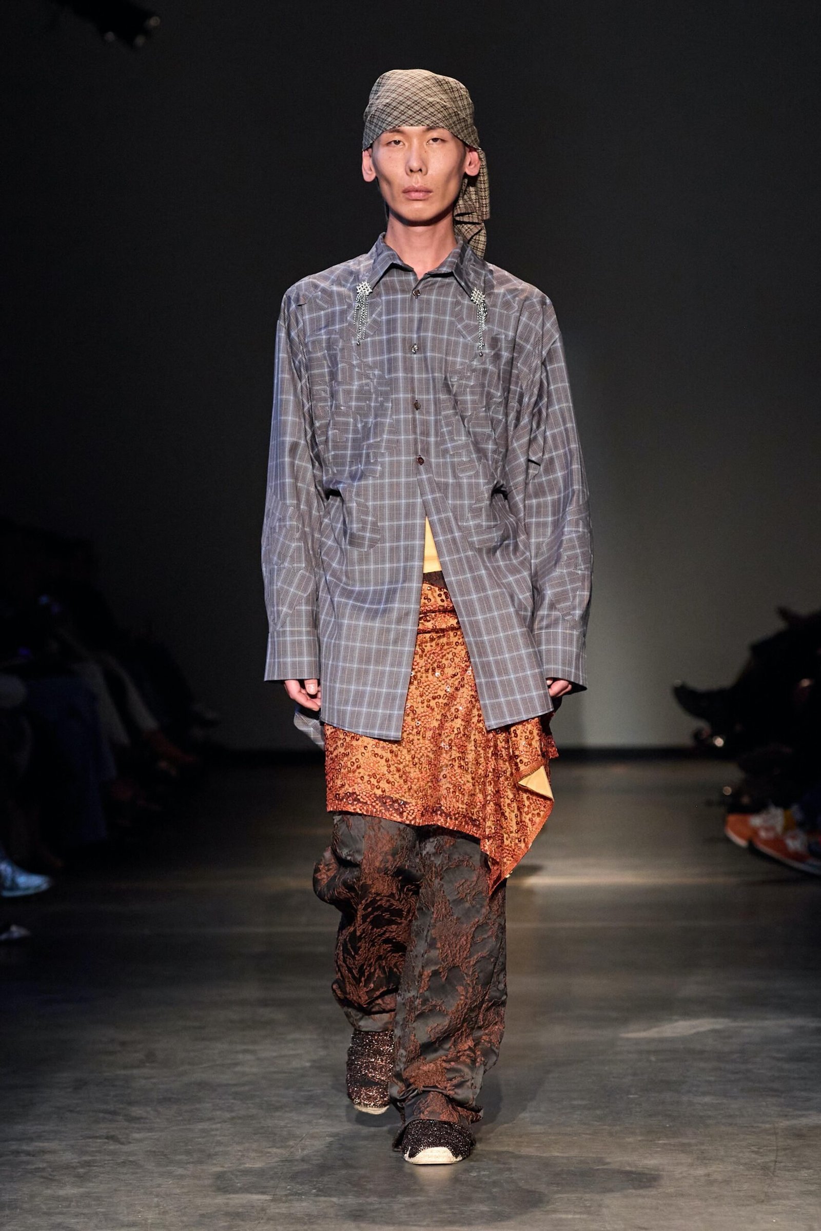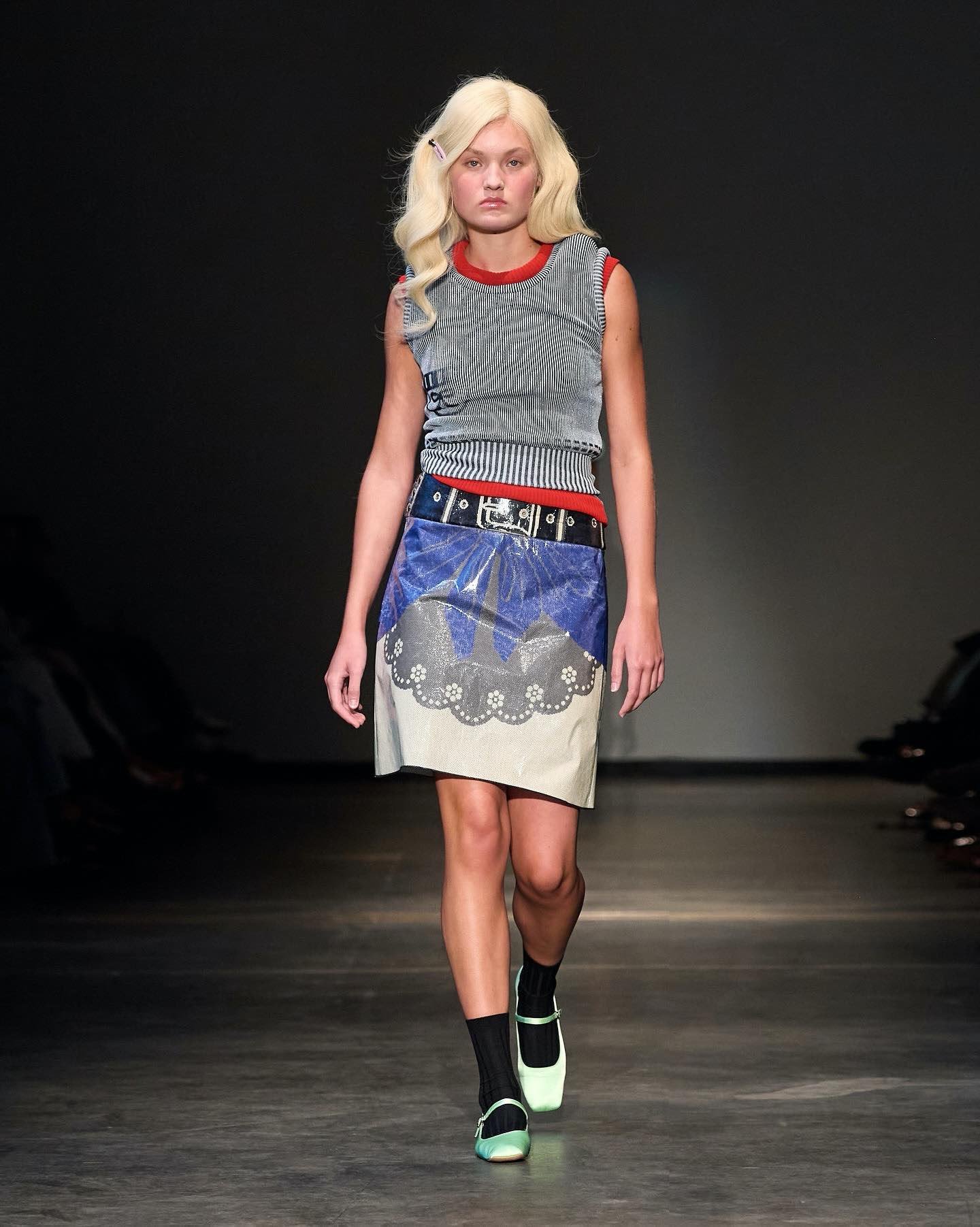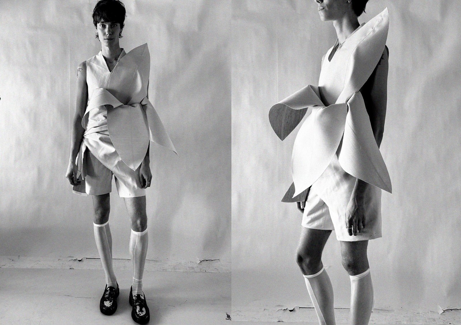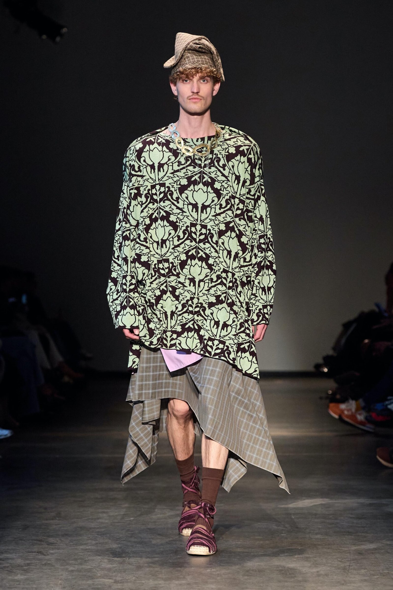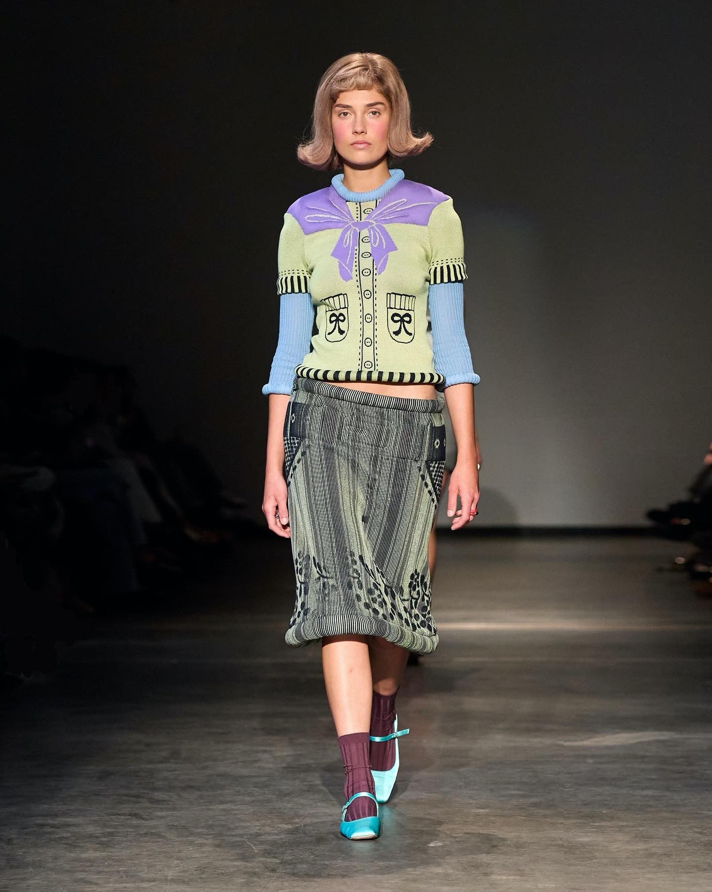 This collection combines vibrant florals, shine, and embellishment to translate the spirit of these women into a tactile language. Flowers – central to their wardrobes and culture – appear through laser-cut appliqué, foil prints, photographic prints, prints on sequins, and beading. Market bags inspired both silhouettes and materials, with plastic-coated textiles, shiny “tacky” surfaces, and kitchen tablecloths used to hold the voluminous shapes. I wanted to evoke the sensory richness of markets and banquet halls – spaces full of abundance, texture, and joy that celebrate community and togetherness.