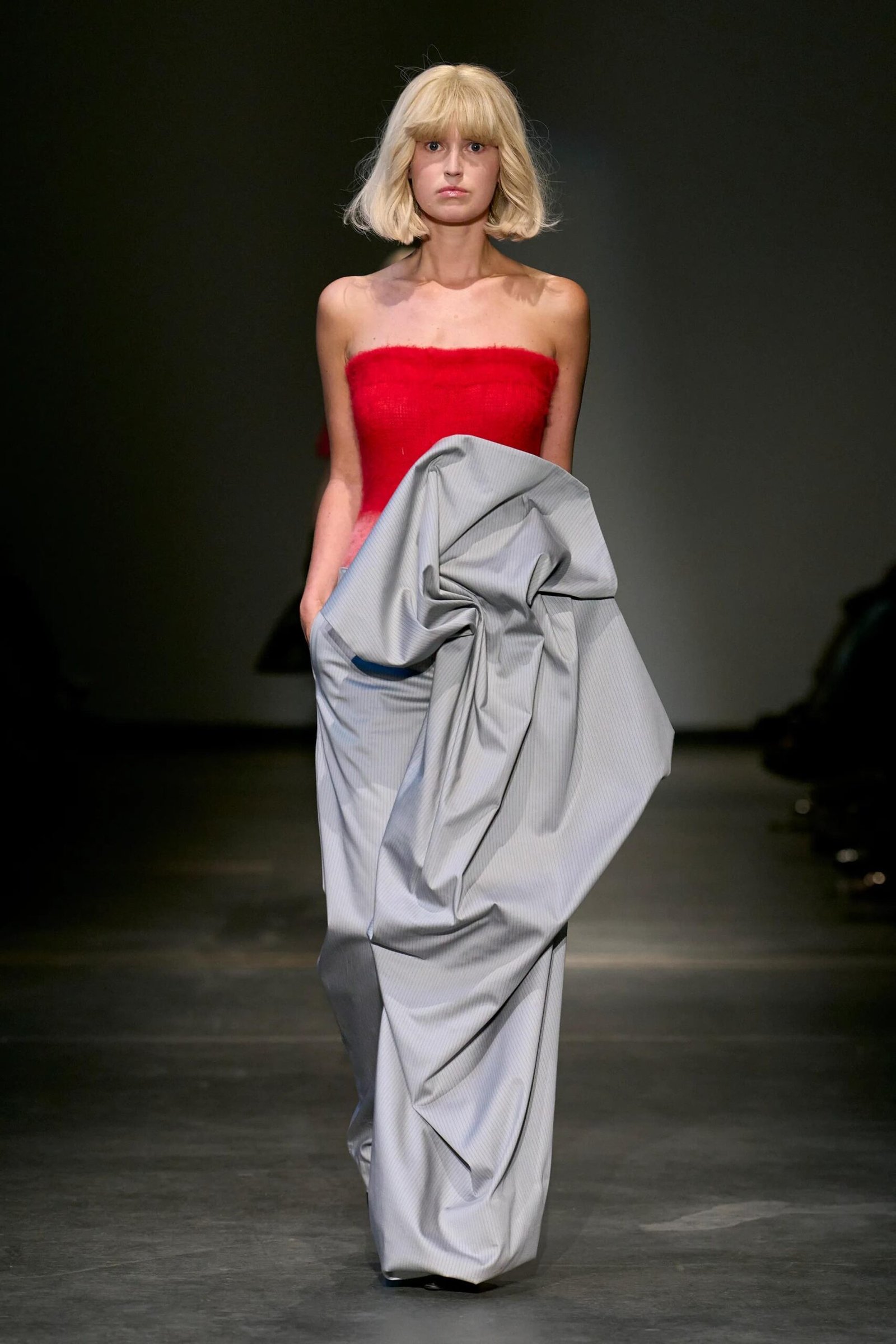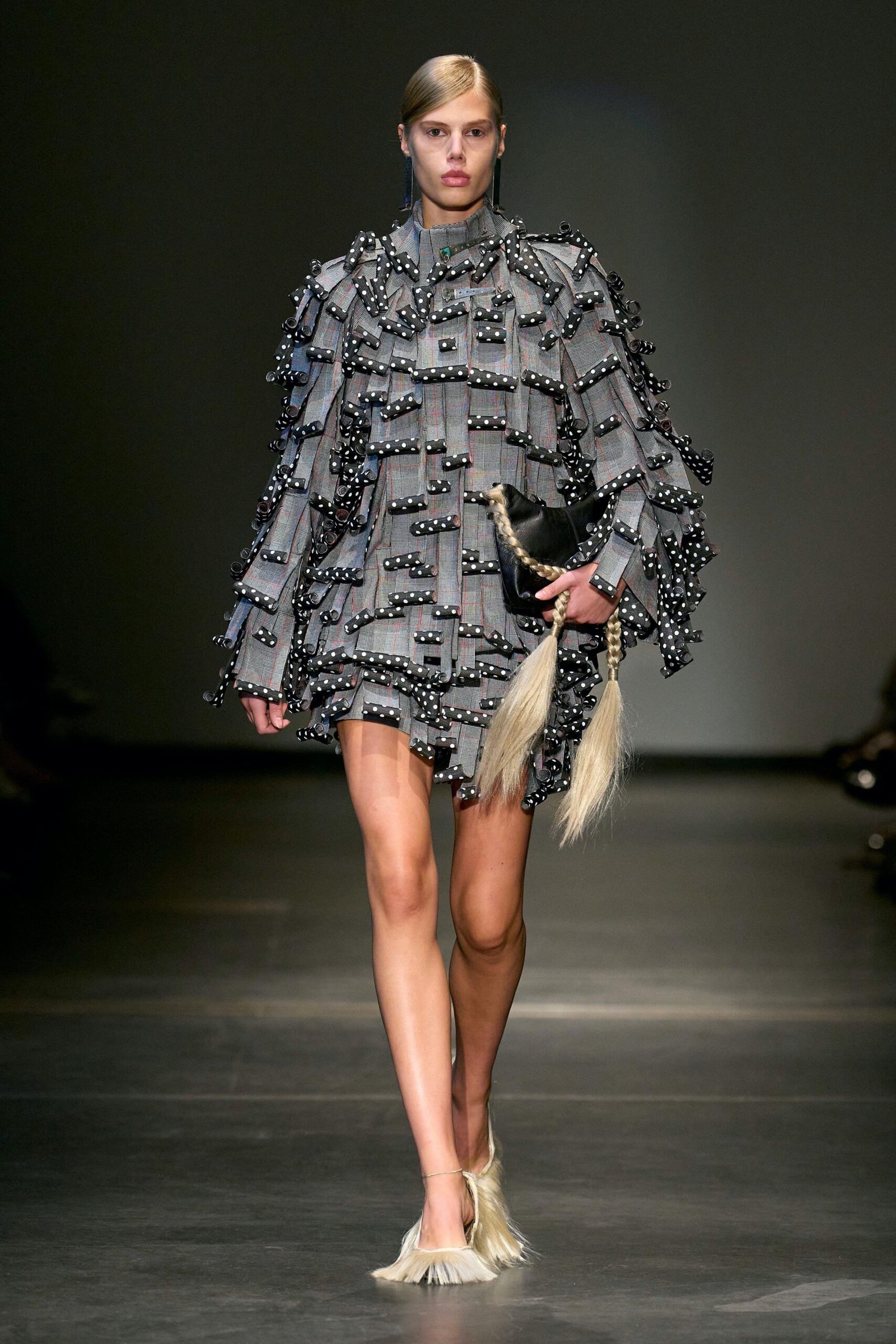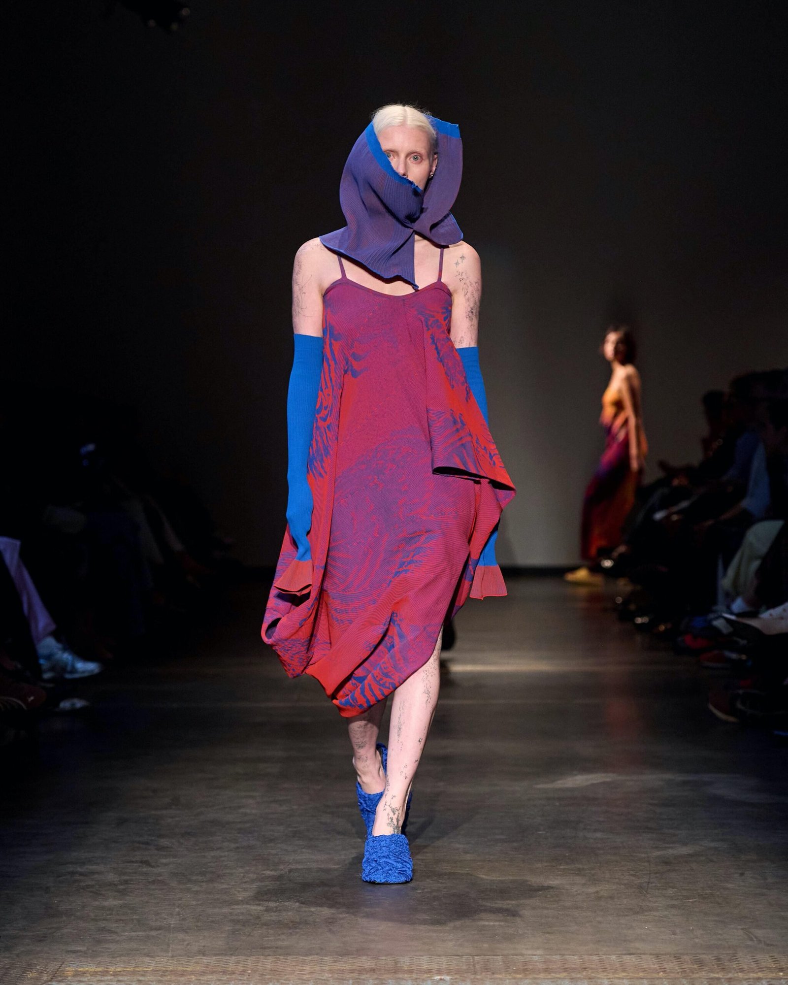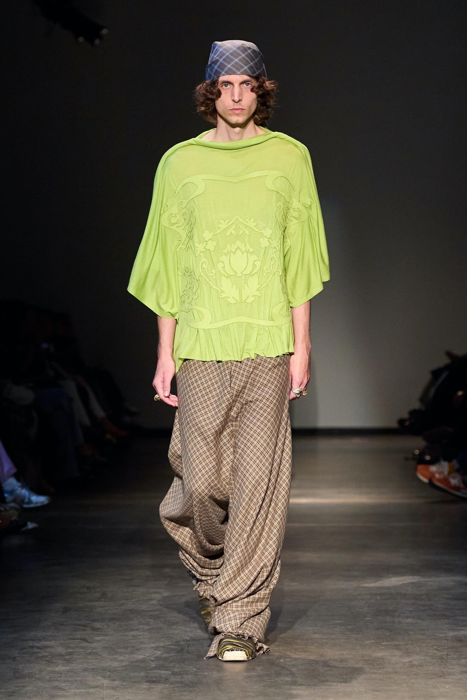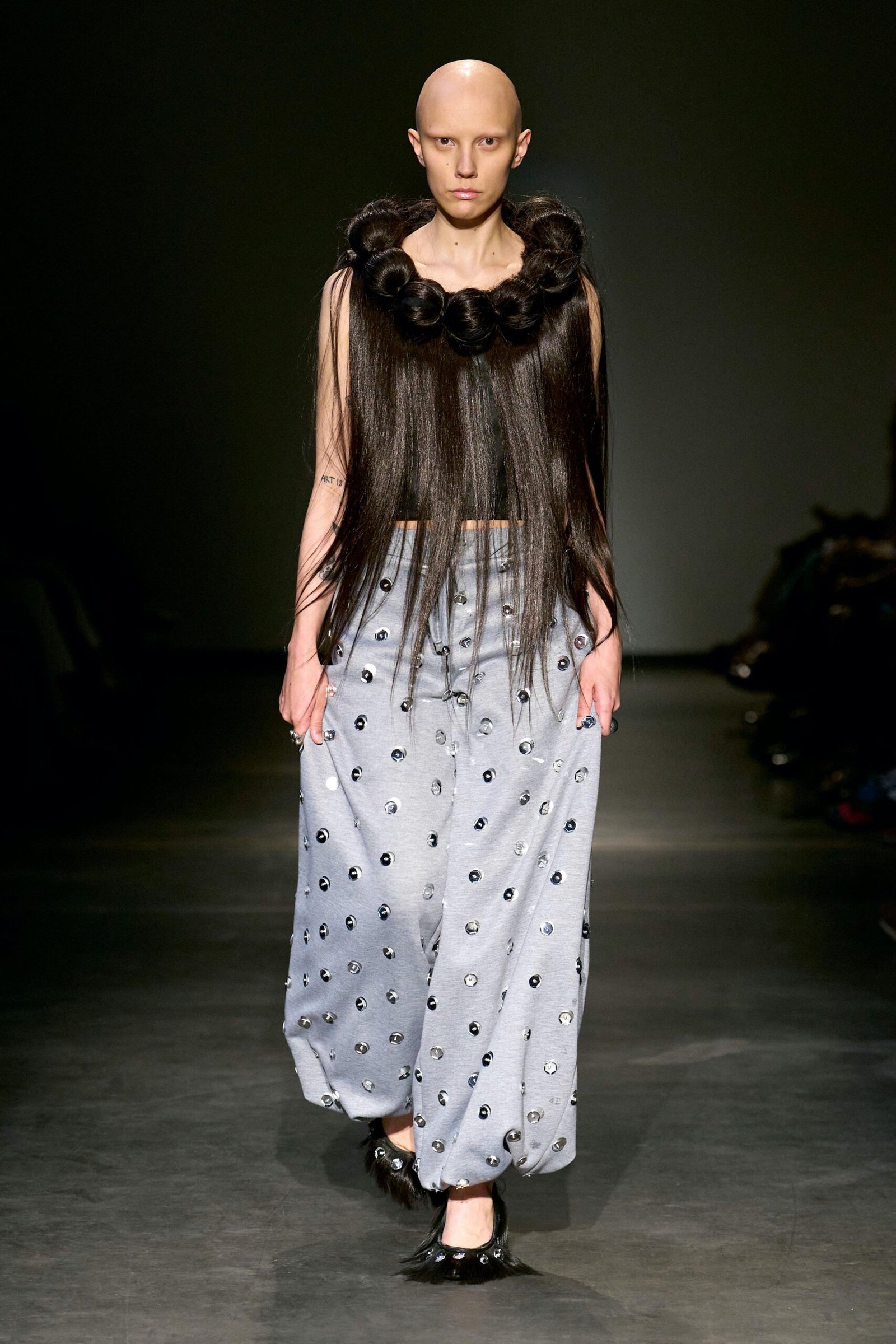 This collection combines vibrant florals, shine, and embellishment to translate the spirit of these women into a tactile language. Flowers – central to their wardrobes and culture – appear through laser-cut appliqué, foil prints, photographic prints, prints on sequins, and beading. Market bags inspired both silhouettes and materials, with plastic-coated textiles, shiny “tacky” surfaces, and kitchen tablecloths used to hold the voluminous shapes. I wanted to evoke the sensory richness of markets and banquet halls – spaces full of abundance, texture, and joy that celebrate community and togetherness.