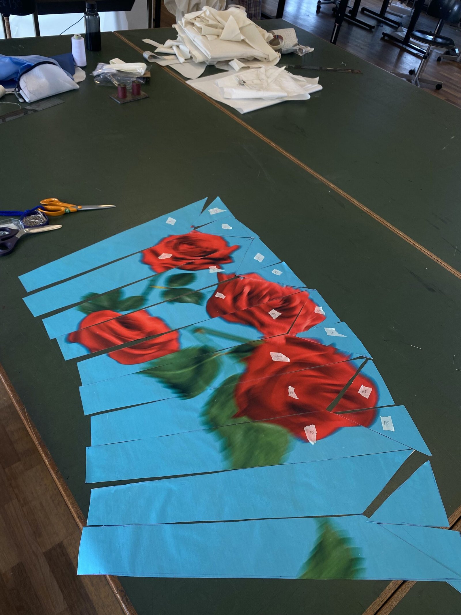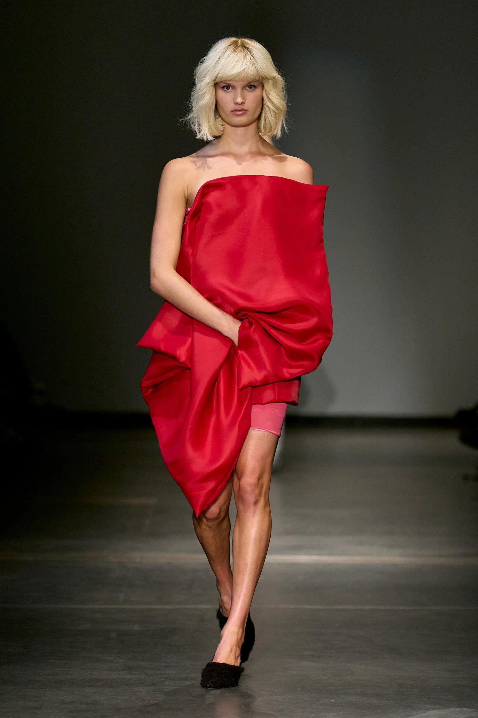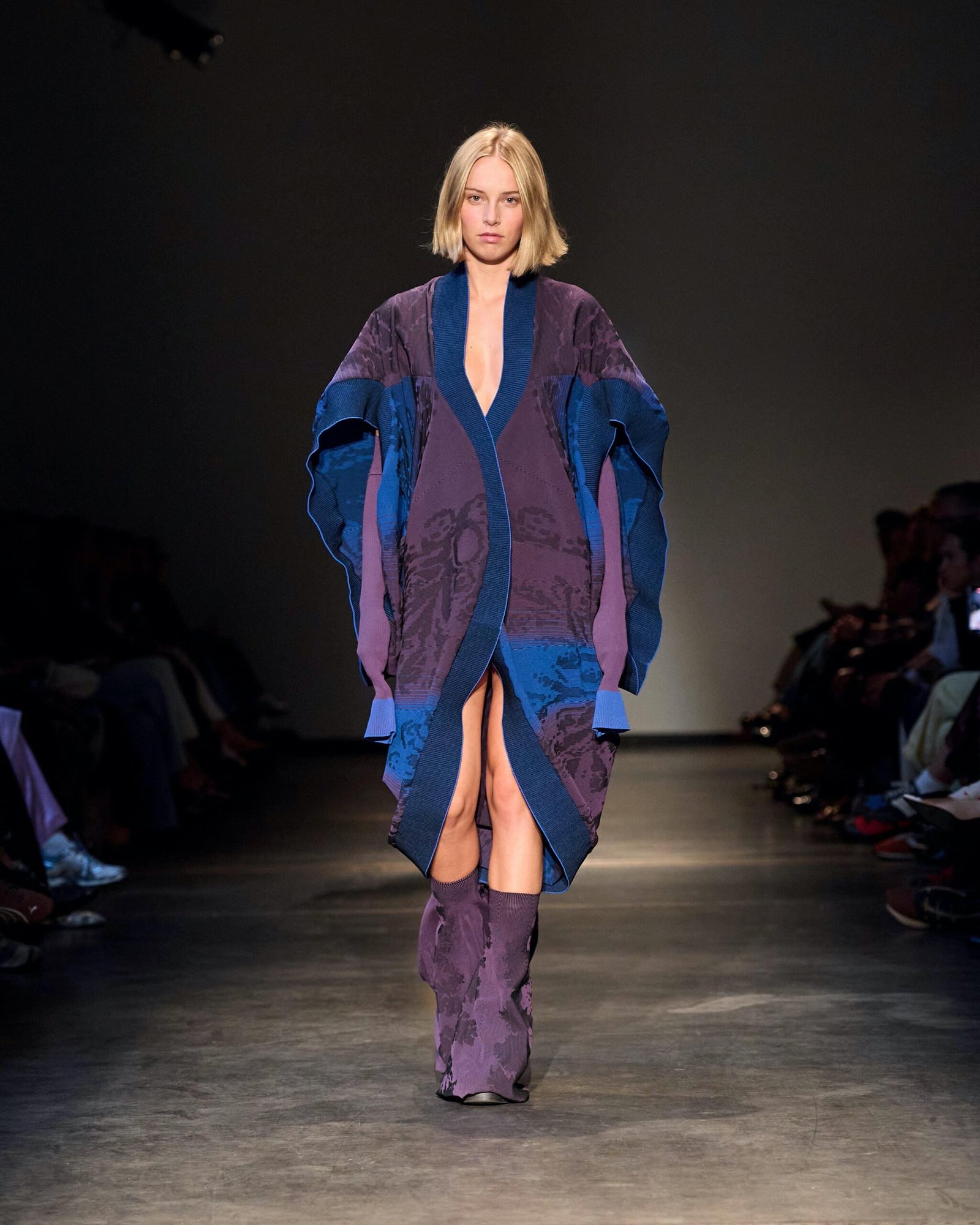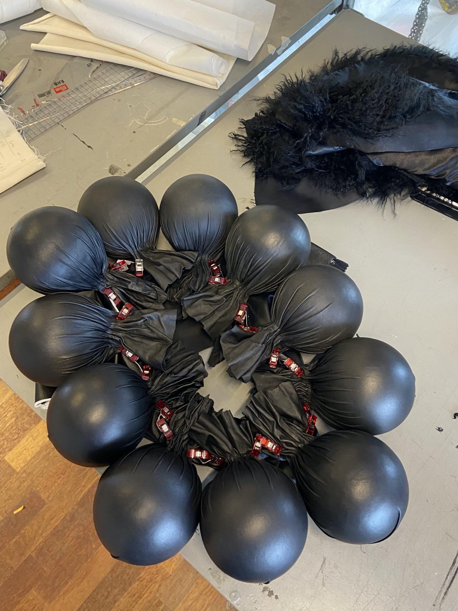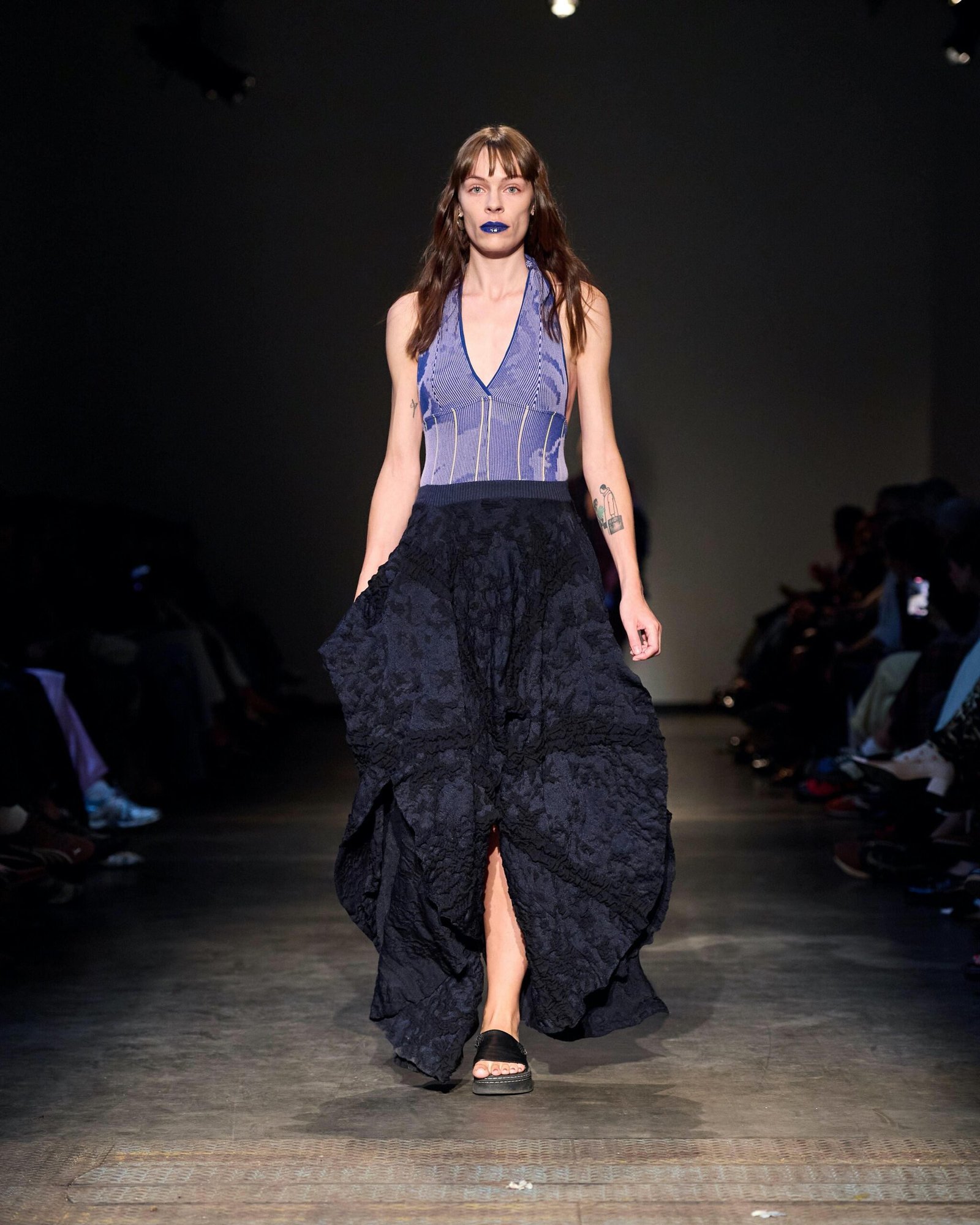 This collection combines vibrant florals, shine, and embellishment to translate the spirit of these women into a tactile language. Flowers – central to their wardrobes and culture – appear through laser-cut appliqué, foil prints, photographic prints, prints on sequins, and beading. Market bags inspired both silhouettes and materials, with plastic-coated textiles, shiny “tacky” surfaces, and kitchen tablecloths used to hold the voluminous shapes. I wanted to evoke the sensory richness of markets and banquet halls – spaces full of abundance, texture, and joy that celebrate community and togetherness.
