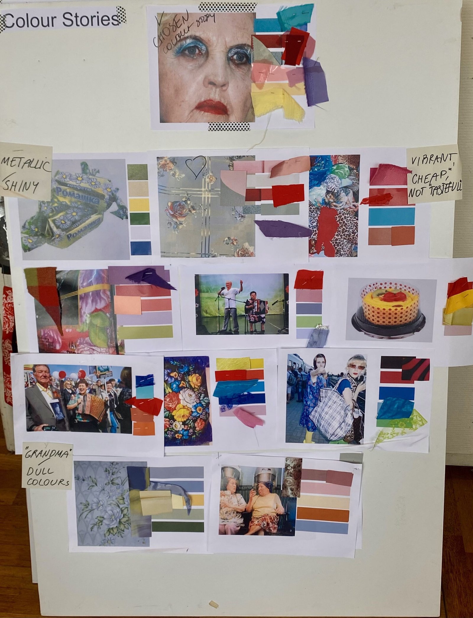 Inspired by my style icons – my grandmother Lubov’ and her girlfriends – this collection explores their eclectic style and love for celebration through the narrative of a market seller birthday party in a southern Russian village. By highlighting their presence and taste, I wanted to challenge Eurocentric ideals of good taste and expand on who is seen and valued in contemporary fashion. By amplifying underrepresented voices, I wish to show that good taste is tied to cultural perspectives rather than universal truths.