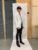 Merging two sides of a heterosexual relationship meant that Fabrice had to consider whether to show his collection on men, women or both. Despite studying menswear, he initially planned to use female models for the more feminine looks, wary of avoiding the clichés associated with gender-fluid clothing. “My tutors said I should try the dresses on boys and it actually looked a lot more interesting,” he says. “I wouldn’t necessarily market it that way but, in terms of making the show a little more bizarre, I think it was better to have male models.”