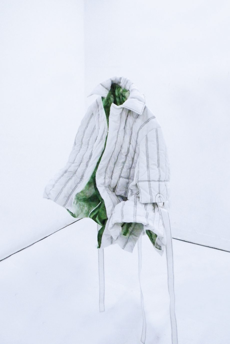 Growing up in Frankfurt am Main, Germany’s capital of commerce, the young designer had always been fascinated by how clothes can support and protect the body. While this might readily bring typical functional wear to mind, Bianca thinks otherwise. During her BA at Pforzheim University, functionality indeed played a major role. It wasn’t until she started her MA in Womenswear at RCA, however, that she began to redefine what the concept meant to her. “To me, one function of a garment can also be that it makes you feel a certain way, that it makes you feel safe. It’s not necessarily a life vest that would actually save your life, but rather something that makes you feel good.”