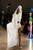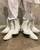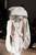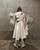My finished look is a dress made of about 15 metres of double-layered, stuffed technical fabric and appliqued with wire ‘tendrils’, a faux suede capelet embroidered with dried French beans and boots to match. I really love to design around a story. I found a second-hand account of The Green Children from 1150 by William of Newburgh in the Faber book of Reportage. It’s a legend which follows two children, completely green in colour who were wandering through a field when they were discovered by local labourers, and they only ate beans . This took place not far from where I’m from in Suffolk, and I thought that it was a really good concept. I began to think about what the children might be wearing and where they might come from. The layering came from the labourers’ sacks, the tendrils from bean stalks, and the cape from shapes of the undergrowth. I also liked the irony of doing the ‘White Project’ on green children was good as well and added a little bit of humour.