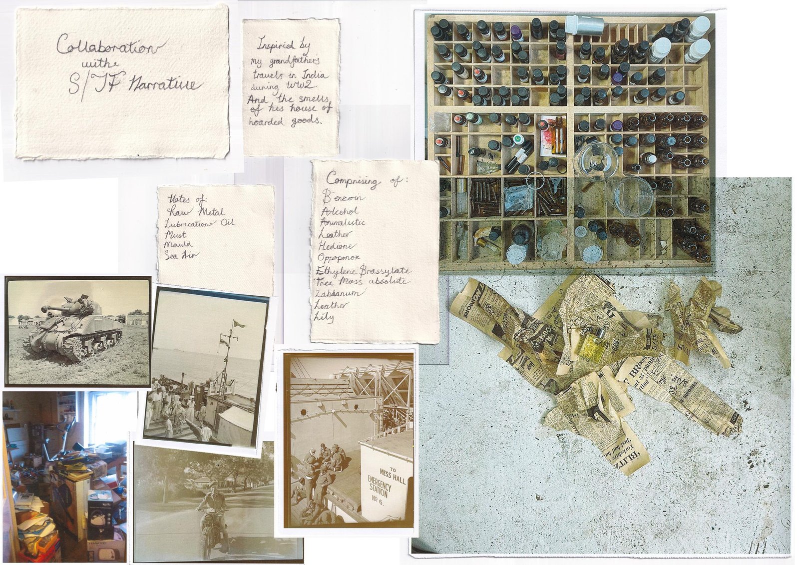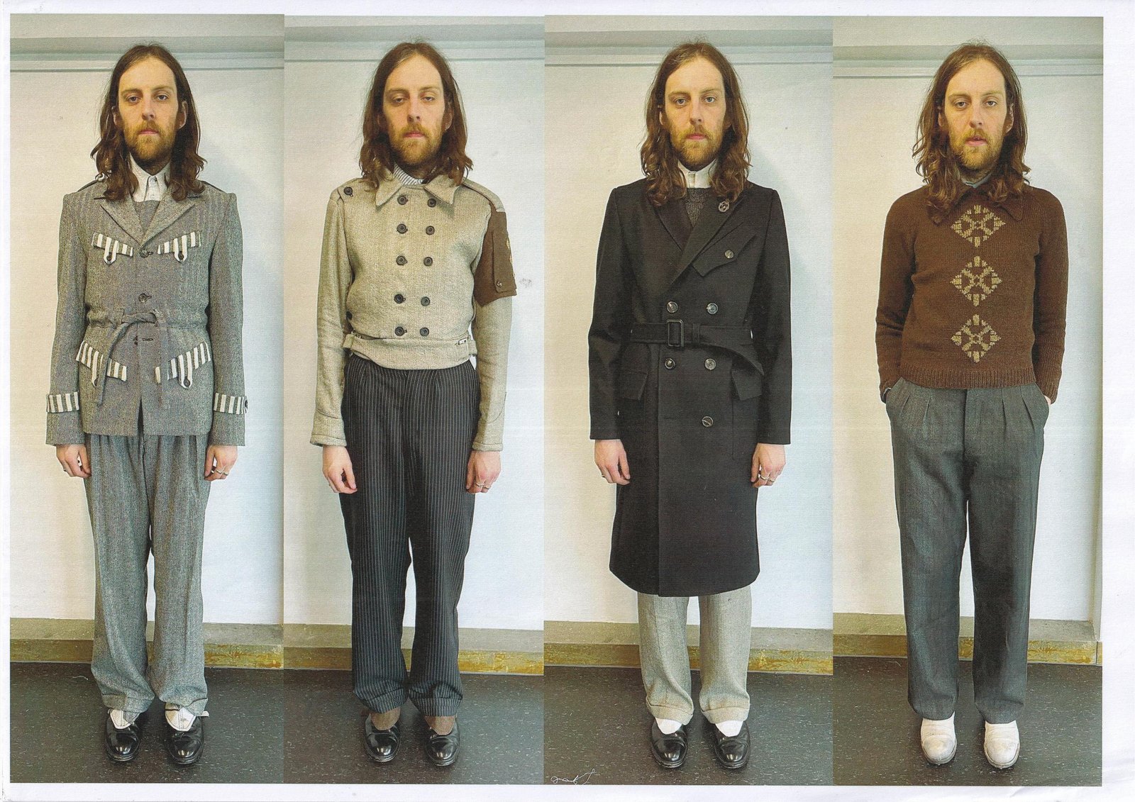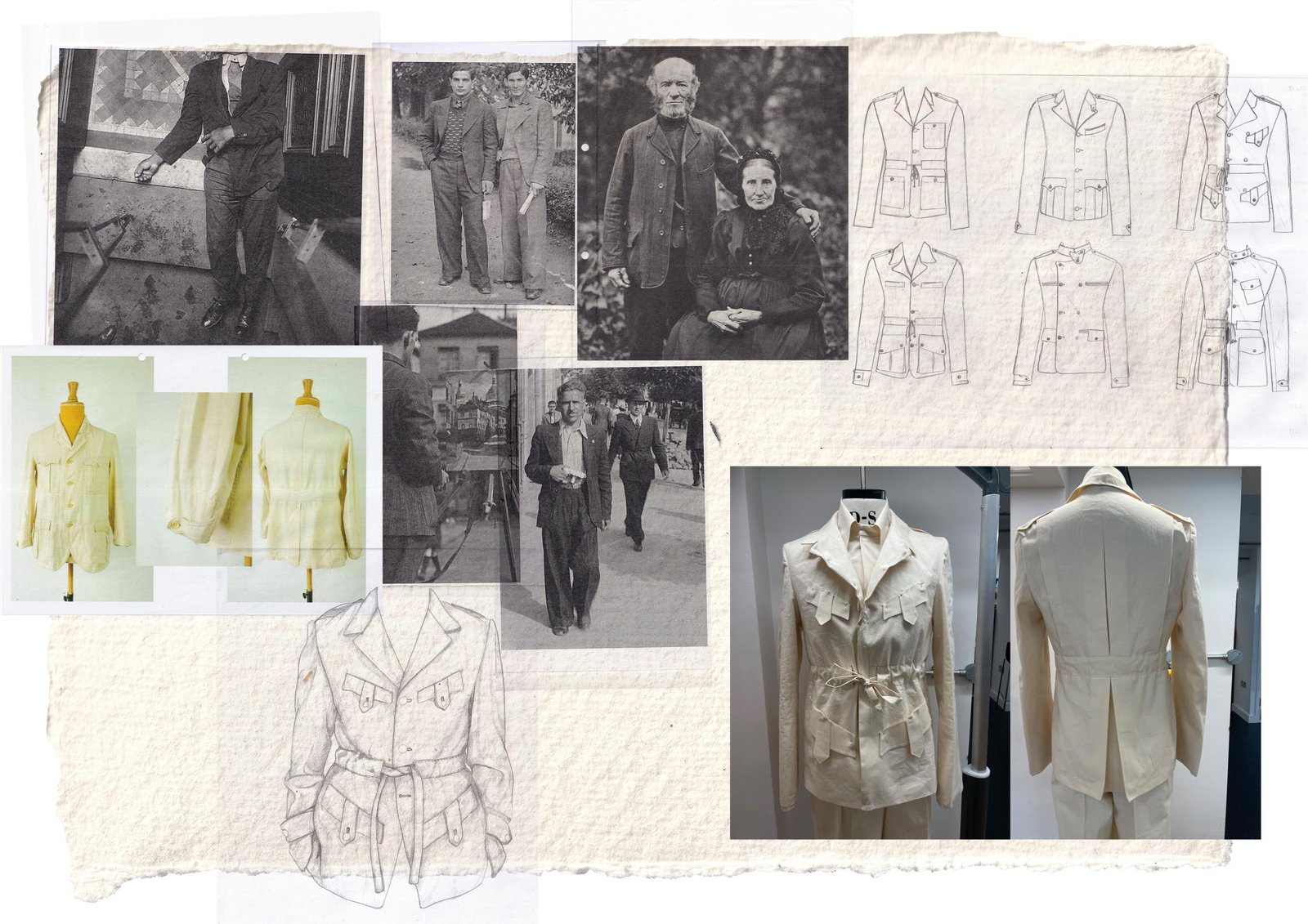 Extending beyond clothing, Cono collaborated with his friend, Solomon Upton-Jubber, to create a fragrance to complement his graduate collection. Inspired by the smells of his grandpa’s house, as well as scents that evoked his life experiences during the second World War, fresh sea scents juxtaposed more pungent, murky undertones. This incorporation of scent gave Cono’s collection a distinctive edge, serving as a means to further evoke the storytelling within his designs.