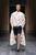 Giorgio is struck by how masculinity is so often associated with violence and harm. Reflecting on the popular British short-hand term for a white tank top (the so-called “wife-beater” vest) he asks, “Why do we have to give violent names to an inanimate object? I’d understand if it was a gun, but it is a piece of clothing.” Speaking to the complex socio-cultural layers that exist within this seemingly simple garment, he used the “wife-beater” as the basis of his collection, in which he embroidered hand-shaped flowers, stuck together by candle heat, onto the vest. Jeans were another garment integral to his collection, since he found they were often connected to Western gender ideals of macho masculinity and the cowboy archetype presented in American popular culture. Referencing the “kintsugi” art practice, he slashed the jeans and repaired them with small gold stitches.