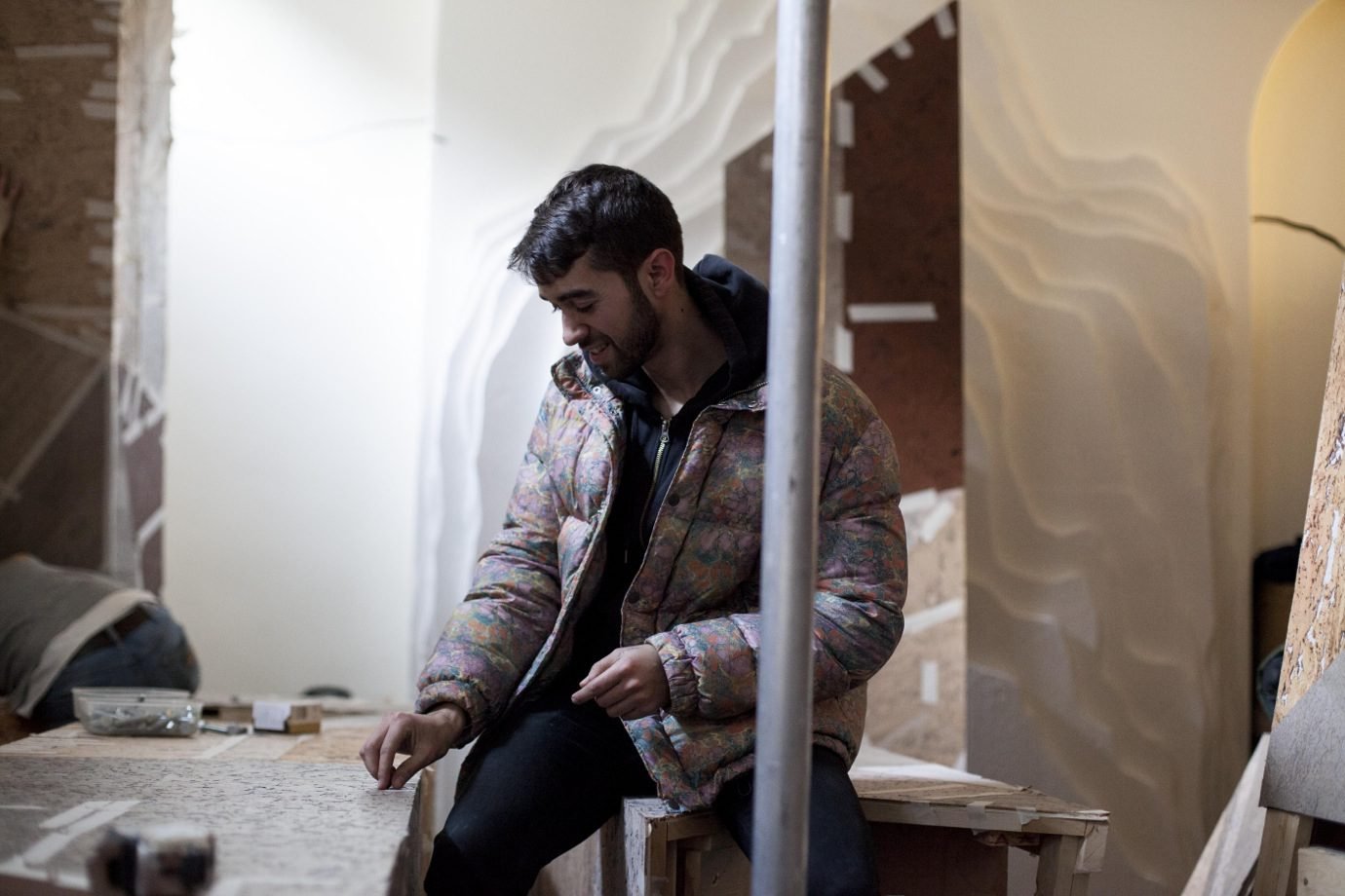 Miguel constructing the set for Portugal’s exhibition at the International Fashion Showcase