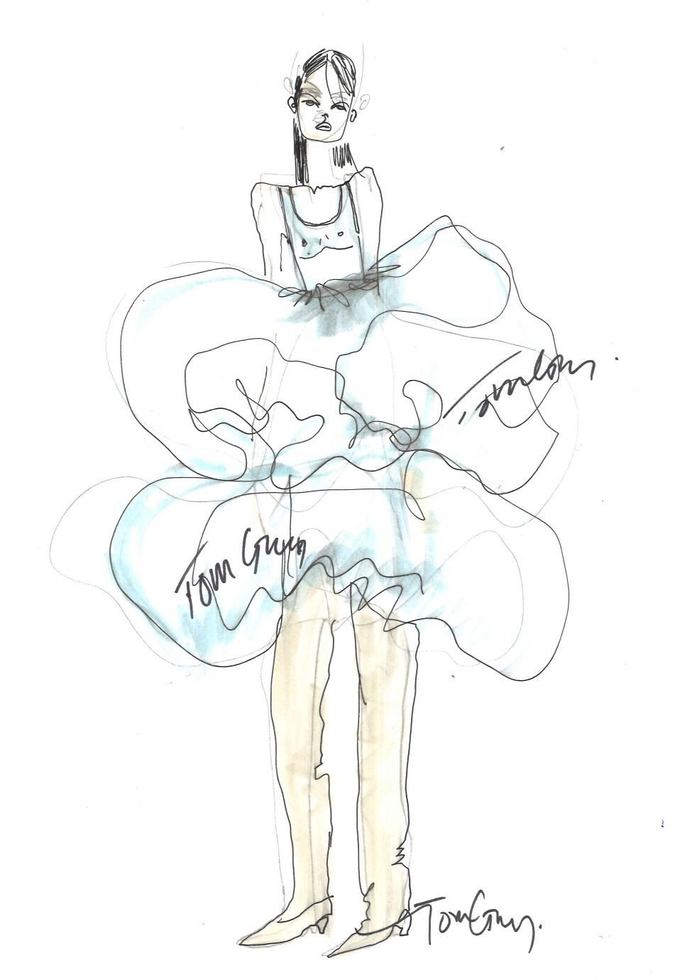 Two years after he graduated from Westminster, Tom started the first year of his MA at Central Saint Martins, saying of the dual year structure: “the first year is really good because you get all of the crap out that you really need to. It enabled me to realise what I like to do.” In the blissful reprieve of the summer holiday between first and second year, Tom was able to take stock of all he had learned from his BA, his label, his time interning for the likes of Erdem and Marios Shwab, and explore what it was he wanted to execute in his graduate collection.