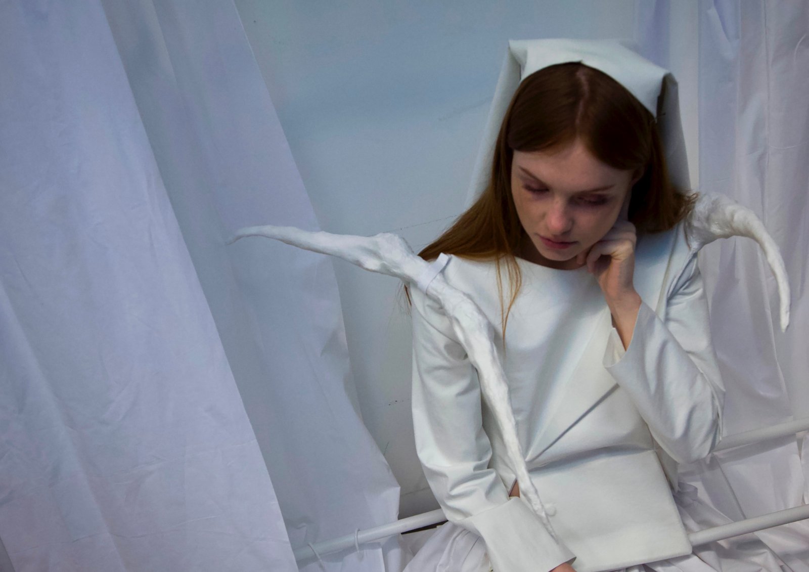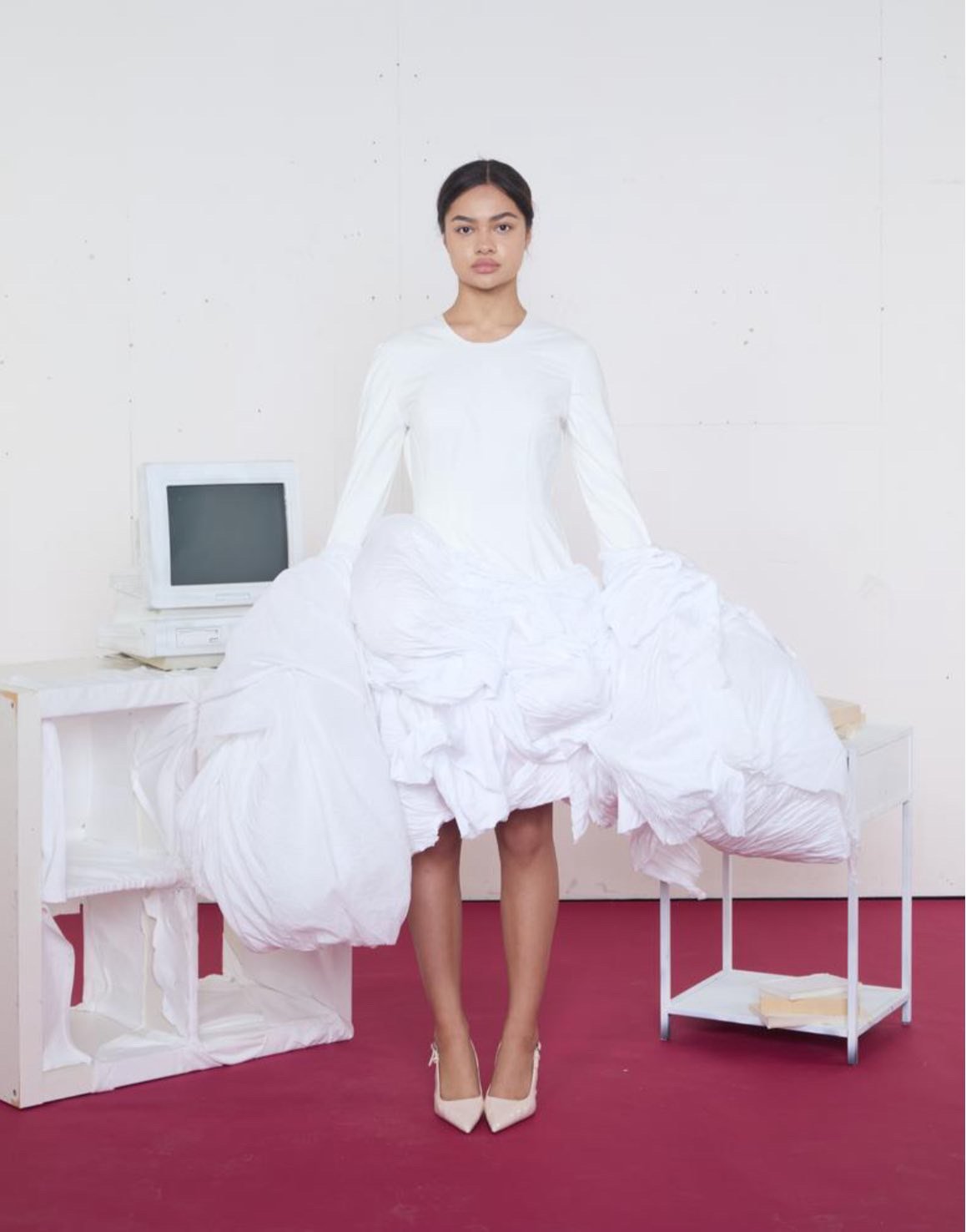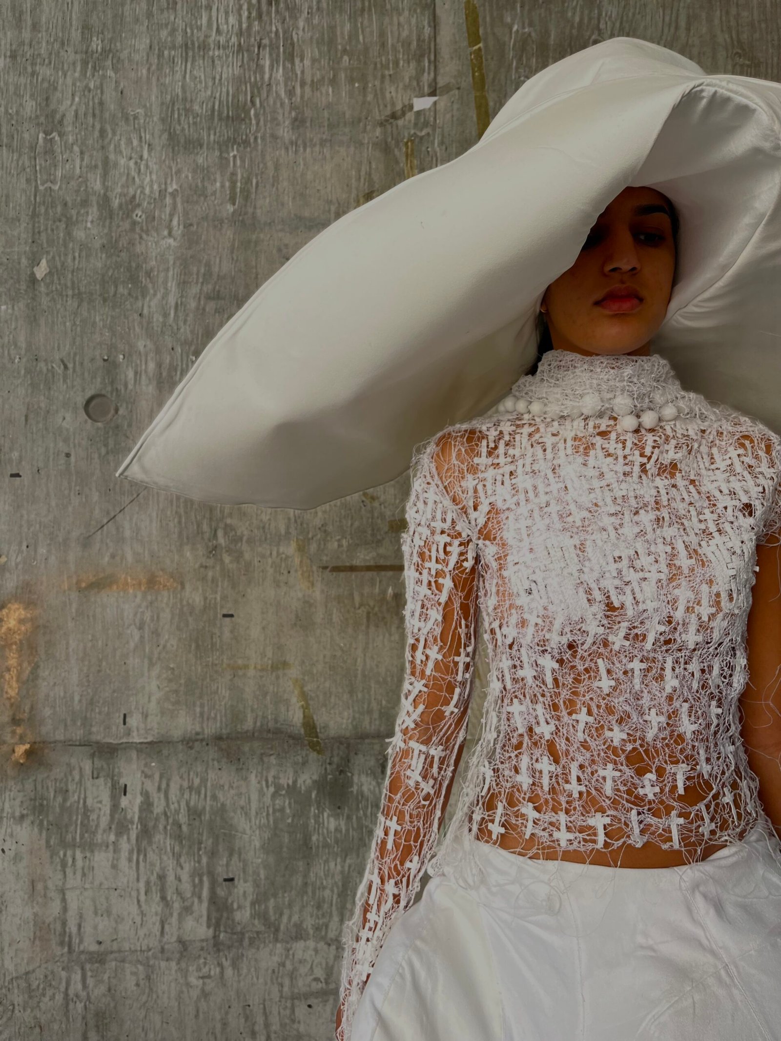 My Reset Show look explores the psychological effects of prolonged exposure to the colour white. Research revealed that extended immersion in white environments can cause perceptual distortion, delusion, and vivid hallucinations. These effects stem from extreme sensory deprivation, which forces the mind to overcompensate, warping one’s perception of reality.