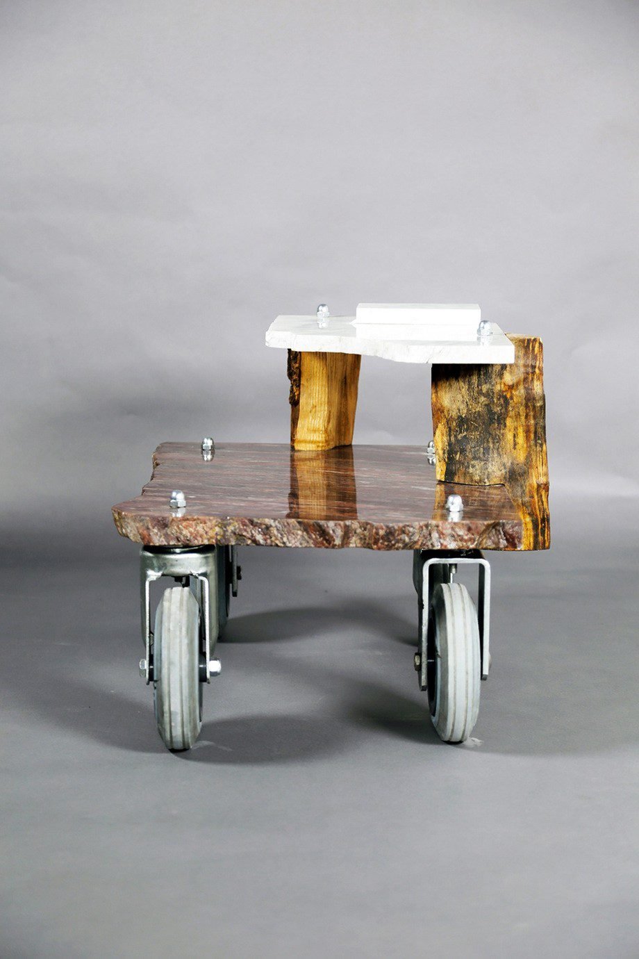 The graduate’s BA collection, featuring woodwork sculptures and tailored menswear, was inspired by conversations with her brother